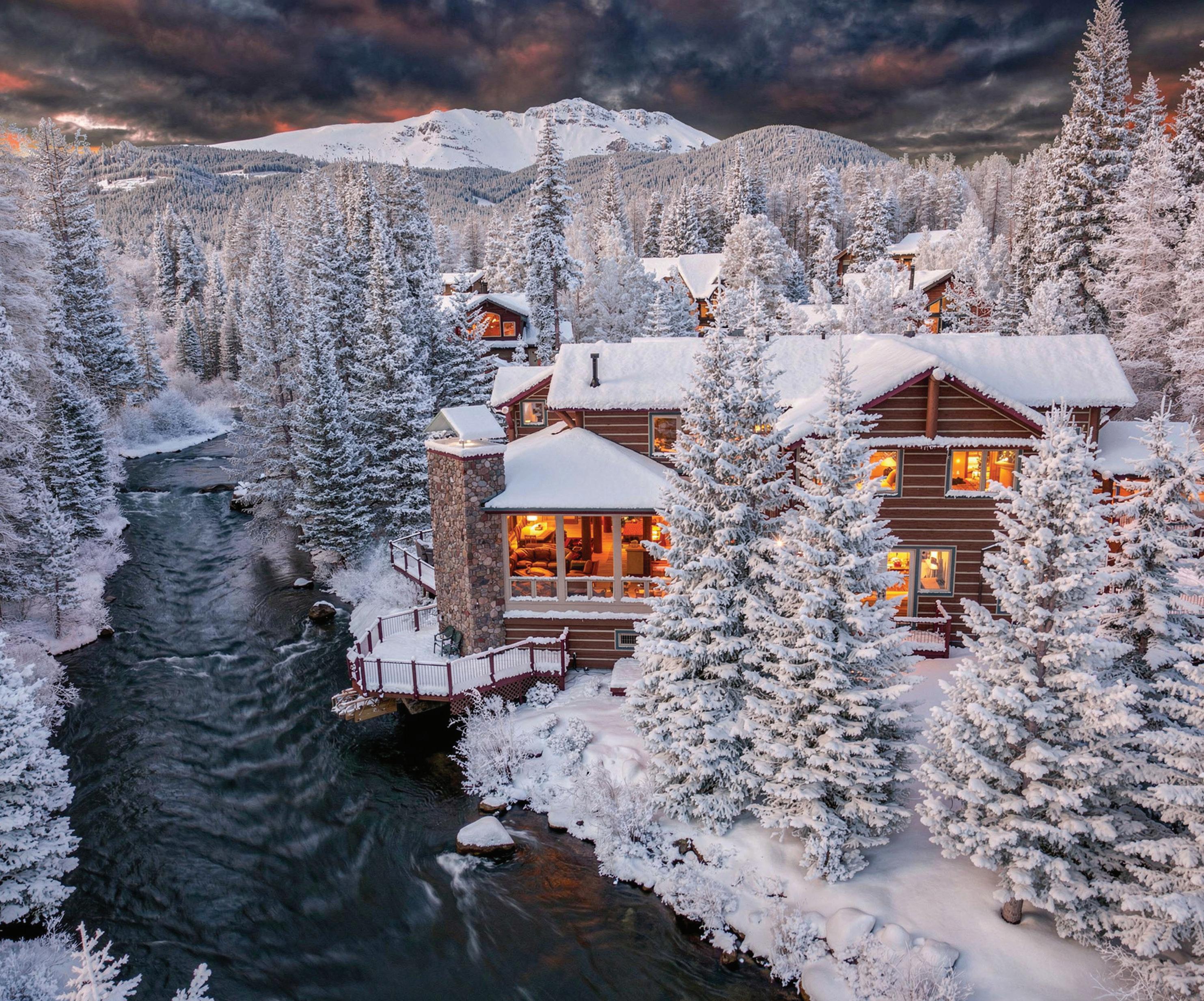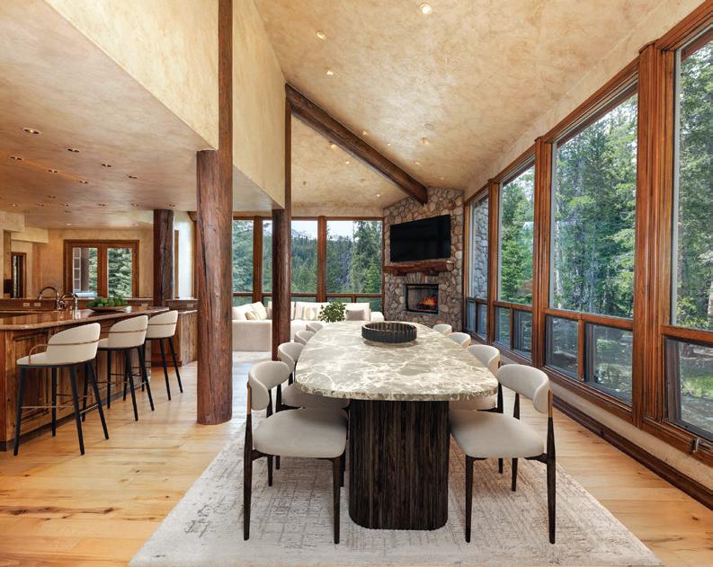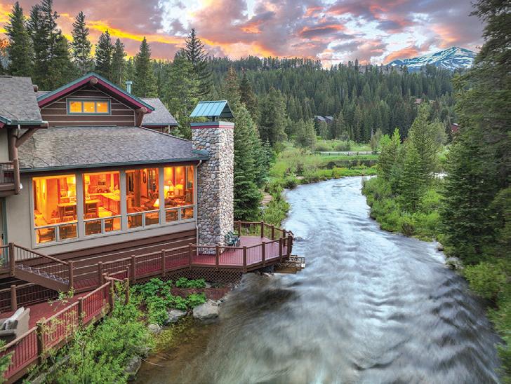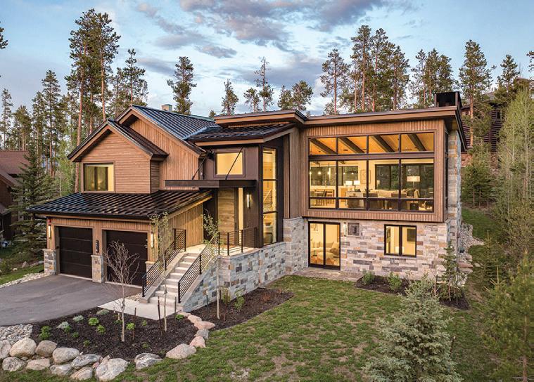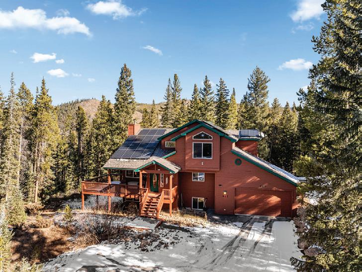 Modern mountain masterpiece on 2+ secluded acres with stunning views from Buffalo Mountain to Peak 10. Designed for entertaining, it features floorto-ceiling windows, chef’s kitchen, heated deck, wine room, and hot tub. Warm, light-filled spaces blend luxury and nature in perfect harmony.