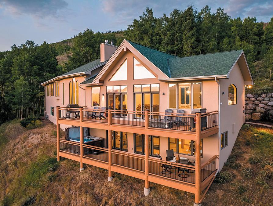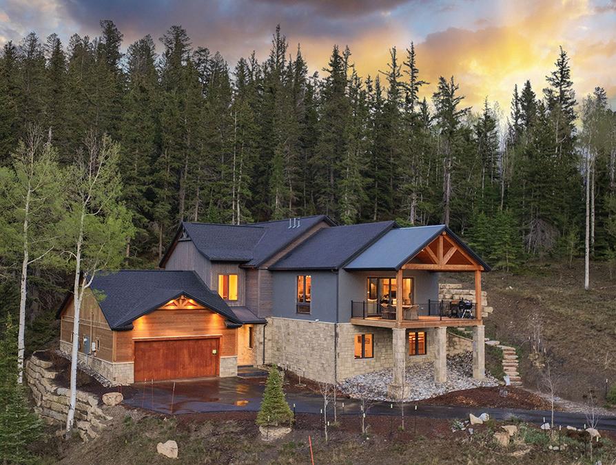 Modern mountain masterpiece on 2+ secluded acres with stunning views from Buffalo Mountain to Peak 10. Designed for entertaining, it features floorto-ceiling windows, chef’s kitchen, heated deck, wine room, and hot tub. Warm, light-filled spaces blend luxury and nature in perfect harmony.