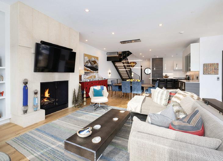 In the heart of Avon, One Riverfront Townhome #13 offers a rare opportunity to own a luxury retreat in one of the Vail Valley’s most coveted locations. This fourbedroom, three-bathroom townhome spans two levels and showcases sleek modern design paired with warm mountain finishes.