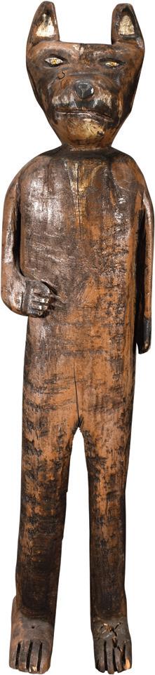 Signed. Carved and stained wood. Excellent condition. 17” h. Est. $300-500. Ship: $55