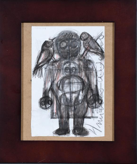 Signed. Mixed media on cutout cardboard. Excellent condition. 26" w x 18.5" h.