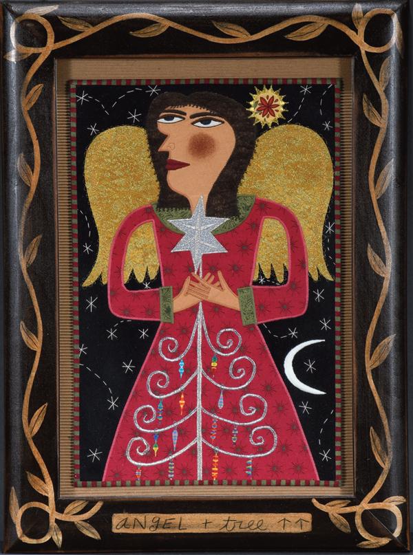 Signed. Mixed media on cutout cardboard. Minor loss of wool and surface grime, otherwise good condition.