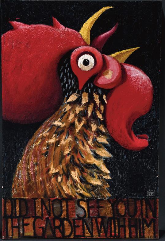 Decorated Rooster. Signed. Mint condition. 13.5” h. Est. $300-500. Ship: $75