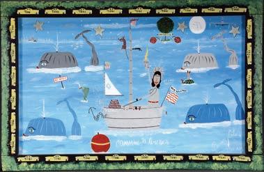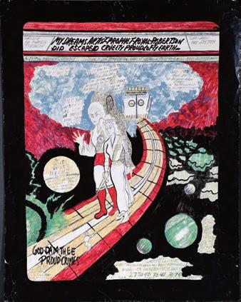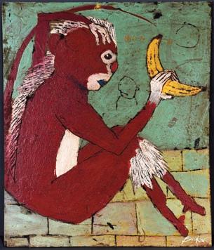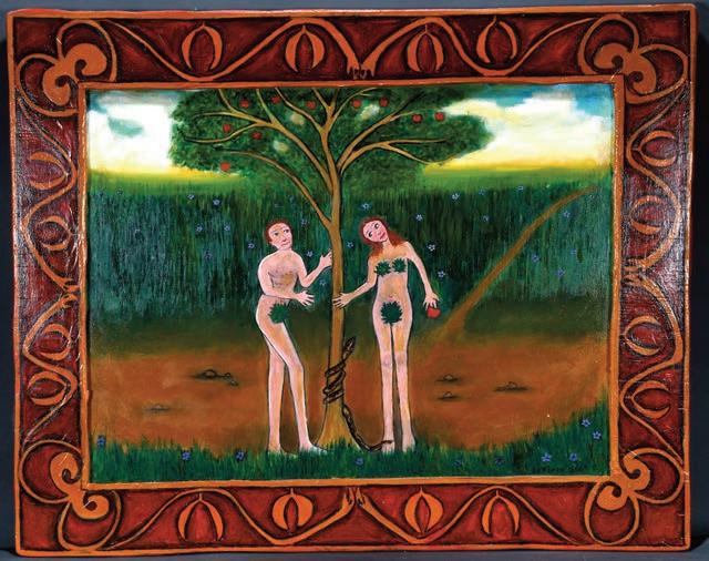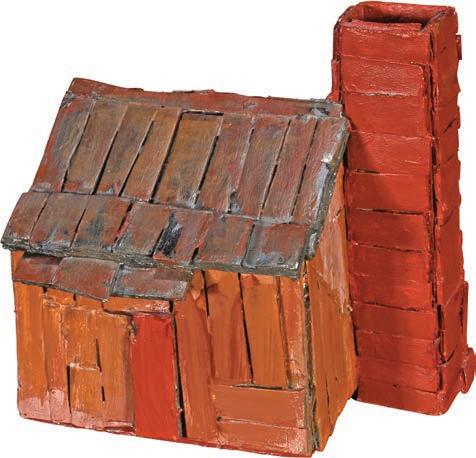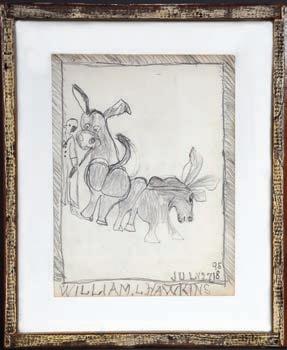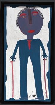 Signed and titled on verso. Mixed media on scrap cardboard remnants. Image is 8" w x 10" h. Frame is 13" x 16". Est. $300-500. Ship: $45