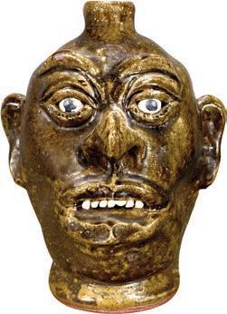 Runny-Eyed Face Jug with Gorgeous Tobacco-Spit Glaze. c. early 1980s. Signed. Mint condition. 10.5" h. Est. $1,000-1,500. Ship: $55