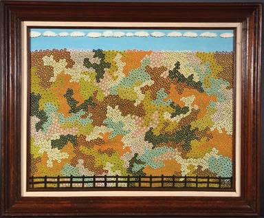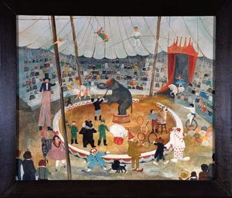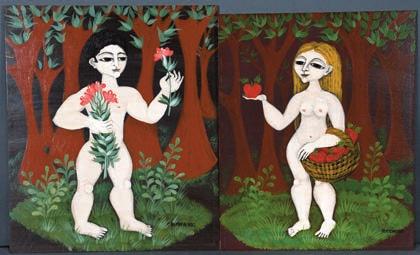 At The Fair and Cutting the Hedge. 1978 and 1981. Signed and dated. Oil on board. Wear on edges otherwise great condition. 8.5" x 8.5" each. Est. $200-400. Ship: $35