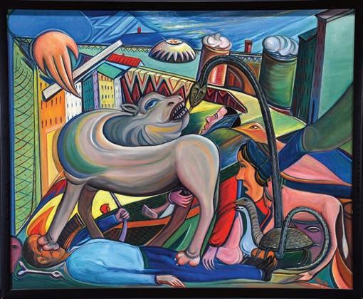 Signed. Oil on mixed media.