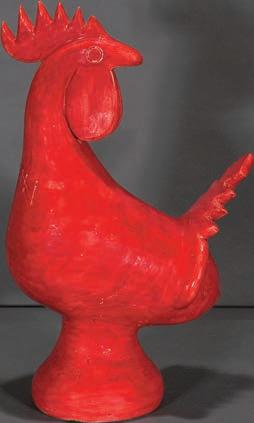 Red Glazed ‘Nub #1’ Backward-Facing Rooster.