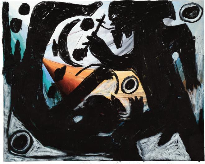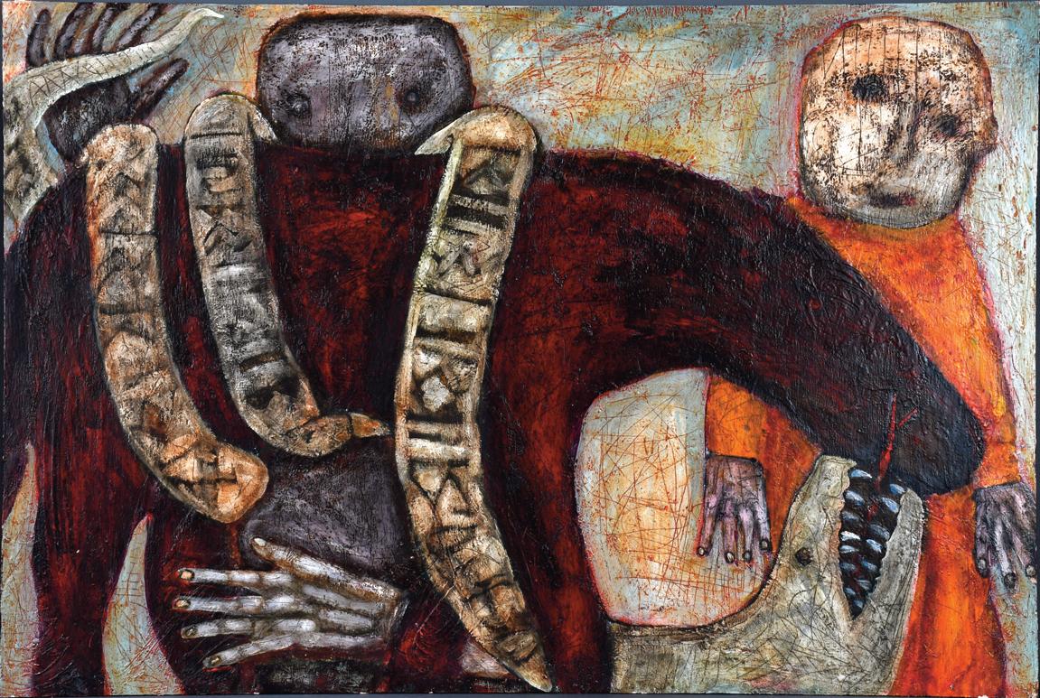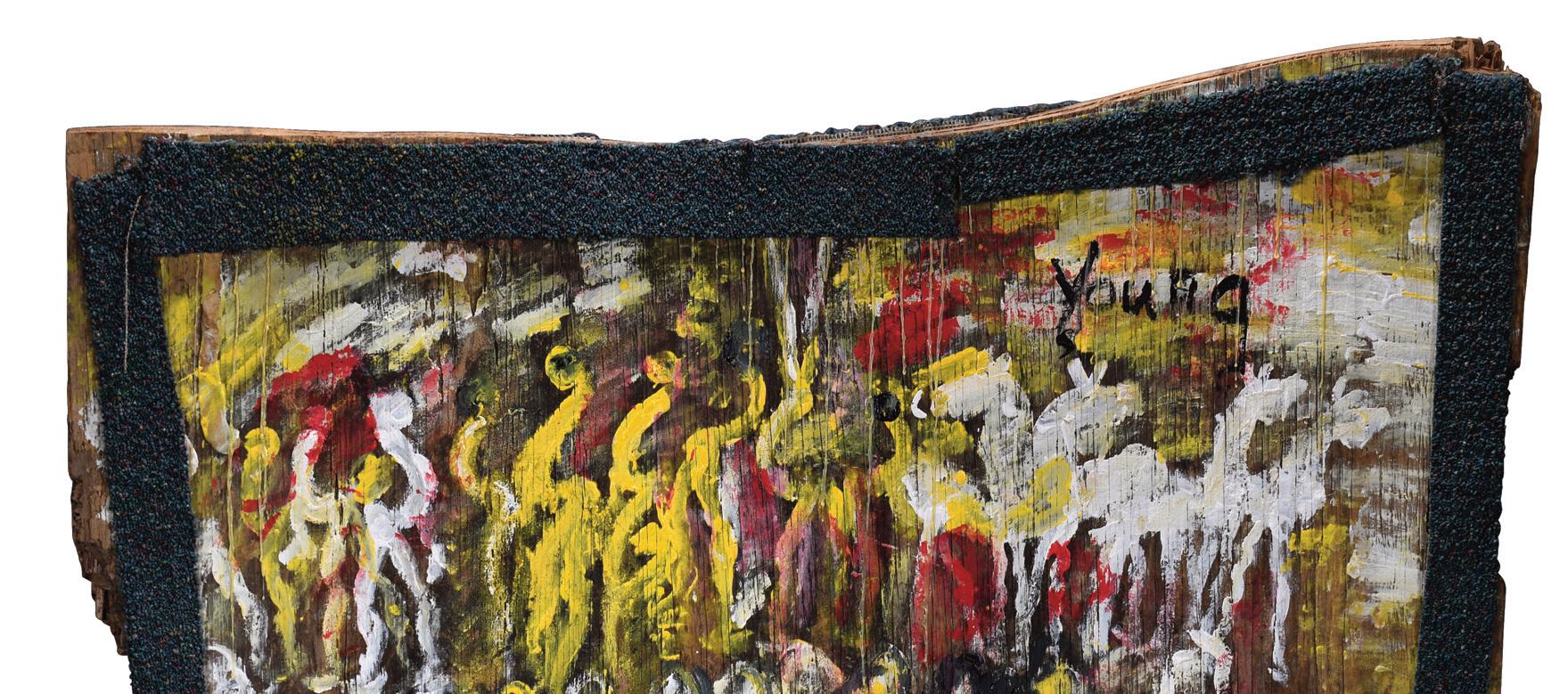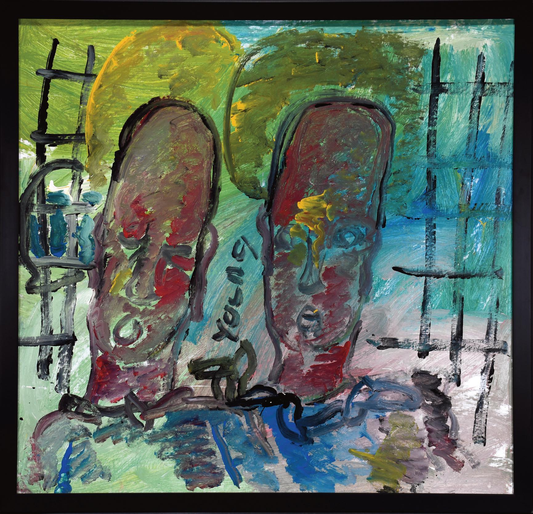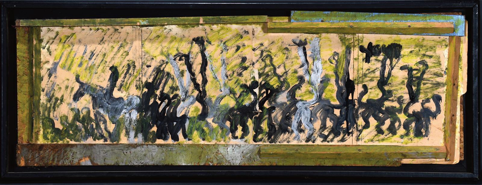 1983. Signed and dated. Paint and mixed media on found cardboard. Excellent condition.