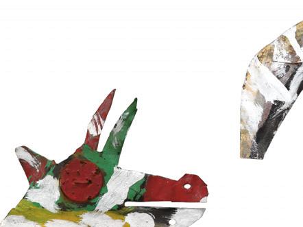 Pig, Raccoon and Aardvark. Carved and painted wood with mixed media. Longest 18" w x 7" h.