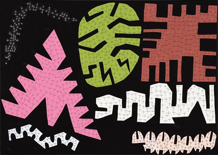 Pattern. Cutout construction paper with ink backed to cardstock. Excellent condition. 13.5" w x 10" h.
