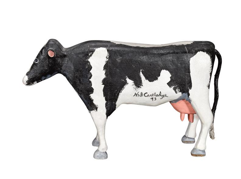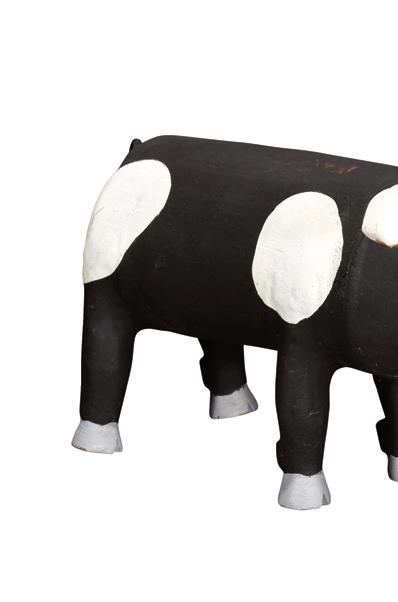 Pair of Black and White Pigs. Not signed. Carved and painted wood. White pig has break and repair to ear, otherwise great condition. Average is 15" w x 10" h. Est. $200-300. Ship: $100
