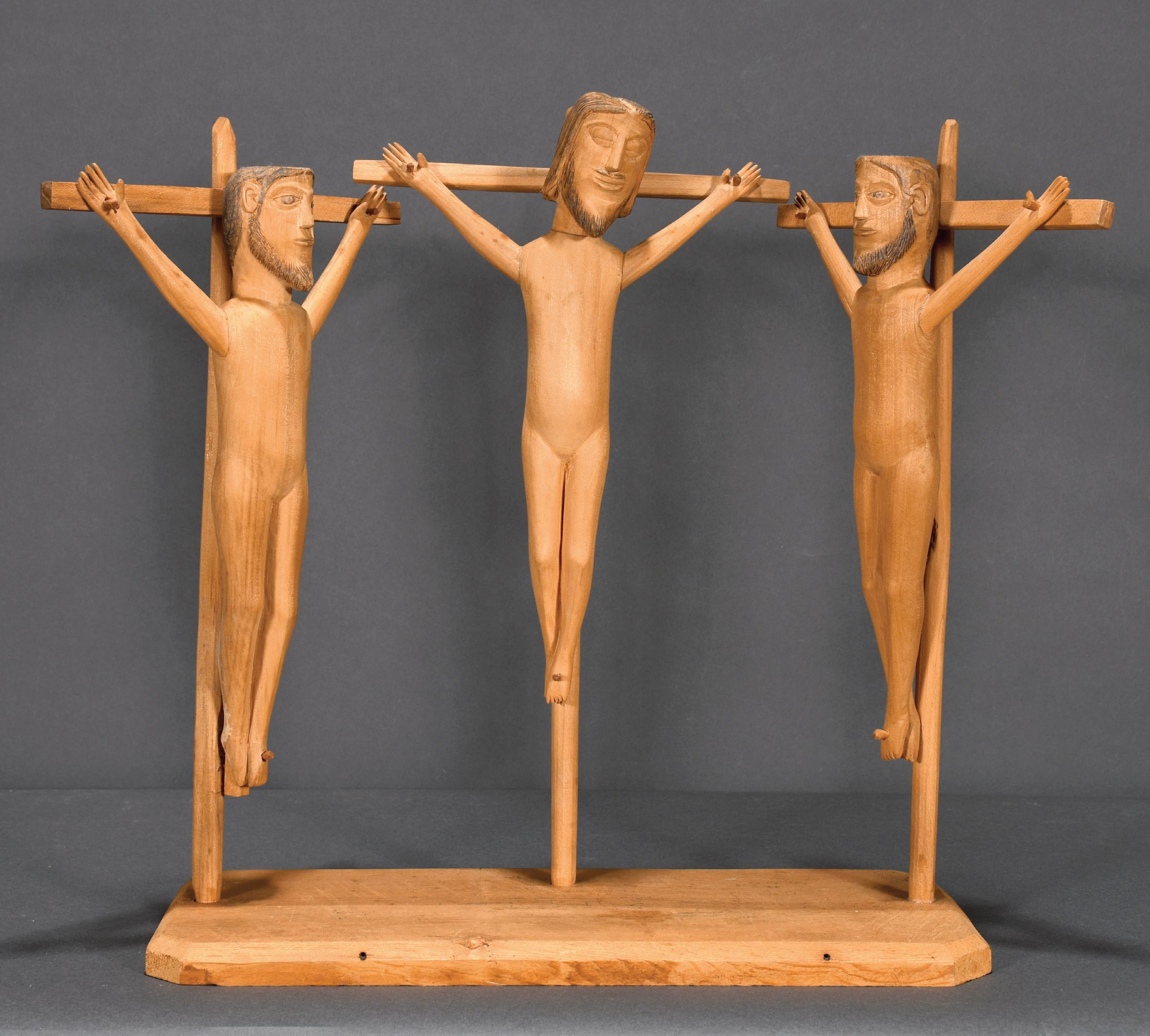 c. 1997. Signed, dated and titled. Carved and painted wood. Minor wear, otherwise good condition. Tallest is 13" h. Est. $100-$200. Ship: $85