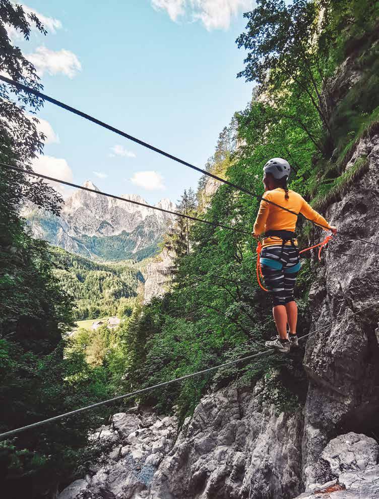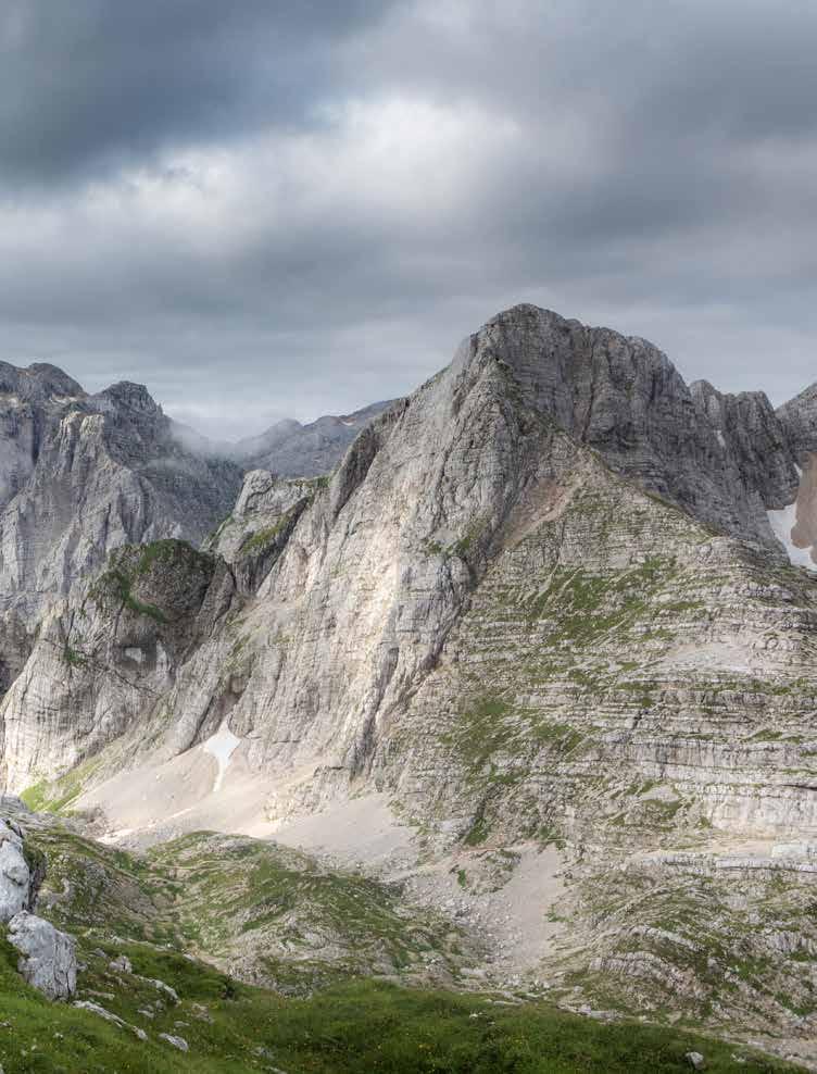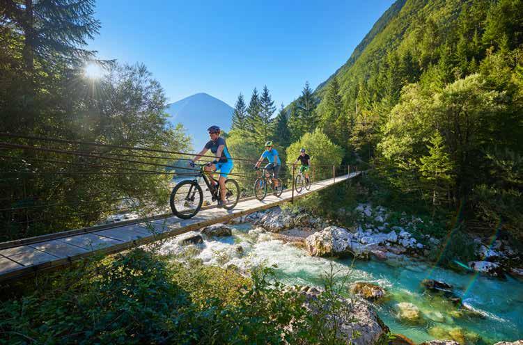 Boven het dal van de Soča-rivier die verrast met zijn woeste wateren en ongewone rivierbeddingen, met grazige bergweiden en uitzonderlijke verhalen, wachten de uitdagingen van de Alpe-Adria-trail en de overblijfselen van de Eerste Wereldoorlog die verbonden zijn met het Pad van de vrede.