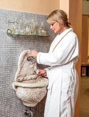 „Ein Bad mit Mineralwasser, das mehr Bläschen vorweist als eine Flasche Mineralwasser, erweitert die Blutgefäße, dringt in die Haut ein und macht die Gefäßwände weicher und elastischer. Schon ein 15-minütiges Bad hilft, den Blutdruck zu regulieren, was Sie als sofortige Verbesserung Ihres Wohlbefindens spüren. Ergänzen Sie die Bäder durch das Trinken von Mineralwasser direkt aus der Quelle.“
