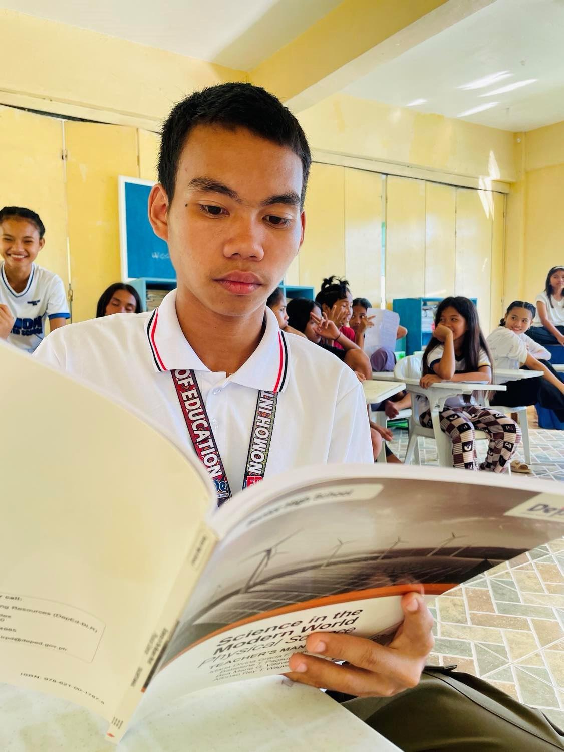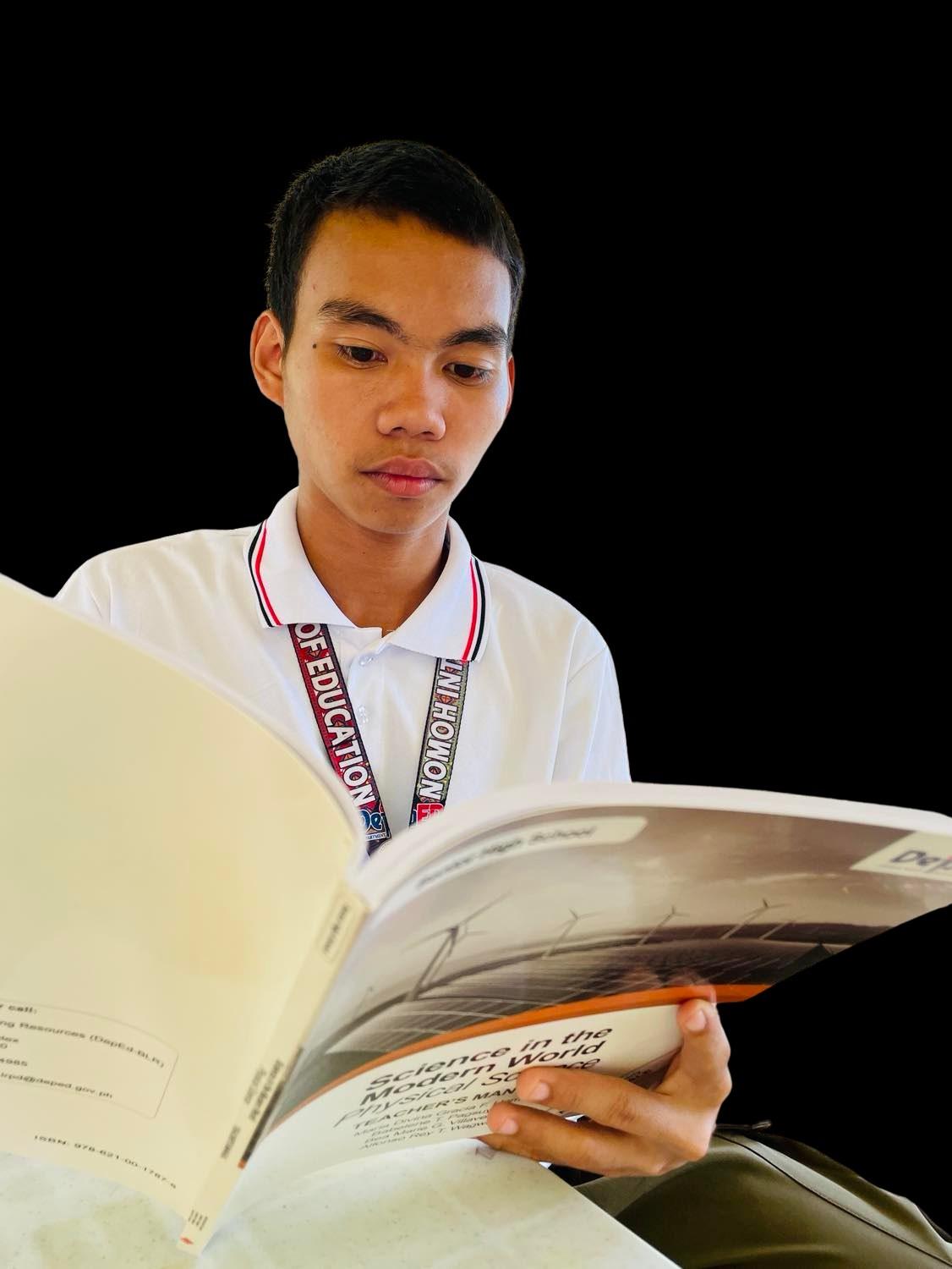 Cloydieisagrade12studentof sectionIbrahim.Heisaconsistent honorstudentandoneoftheIPlearnersbelongingtoaTboliTribe.Athis earlystagesofschooling,heendures wakingupearlyinthemorningand walksthealmostthreekilometerrocky andmuddyroadeverydayfromheis homeatSitioMalaklongtoNomoh IntegratedSchool.Beforereaching theschool,hehastocrosstheriver, whichbecomesdangerousduring heavyrains.Withhimishisoldbag thatgavebyhisteacherwhenhewas inGrade10.Heistheeldestamong thefivechildren.Despitebeingpoor, quittingislastthinghewoulddo. Nothingintheworldcouldstophim fromgoingtoschool,evenonabad weatherorinanemptystomach.