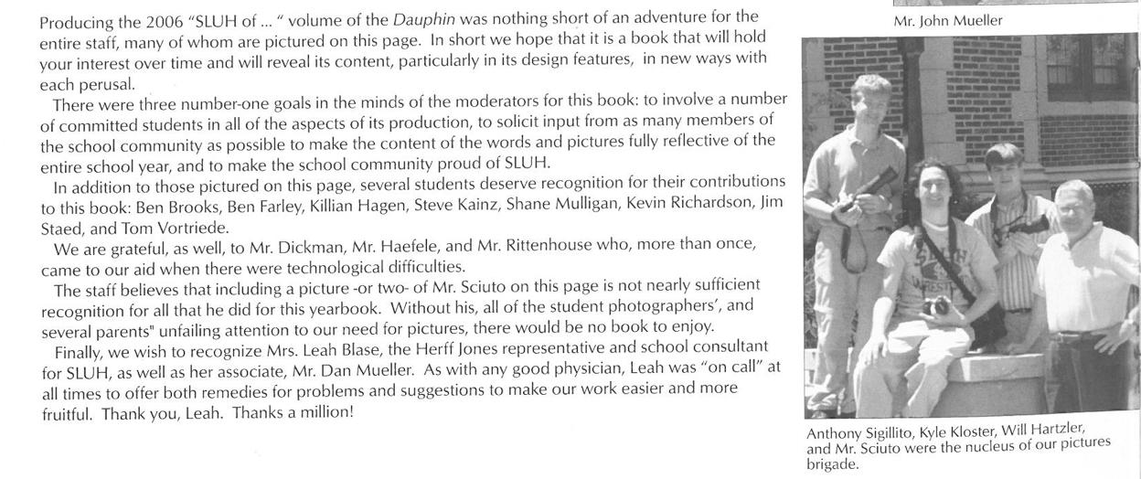 LJ: I was reading the Prep News and Yearbook and they were saying how you helped Mr. Mueller and Mr. Keefe with the yearbook in ’05 which came after the ’06 one which you helped with.