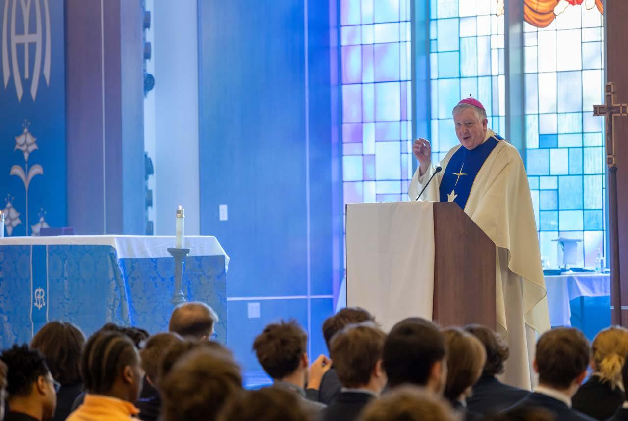 Bishop McGovern, Archbishop Rozanski Visit Campus