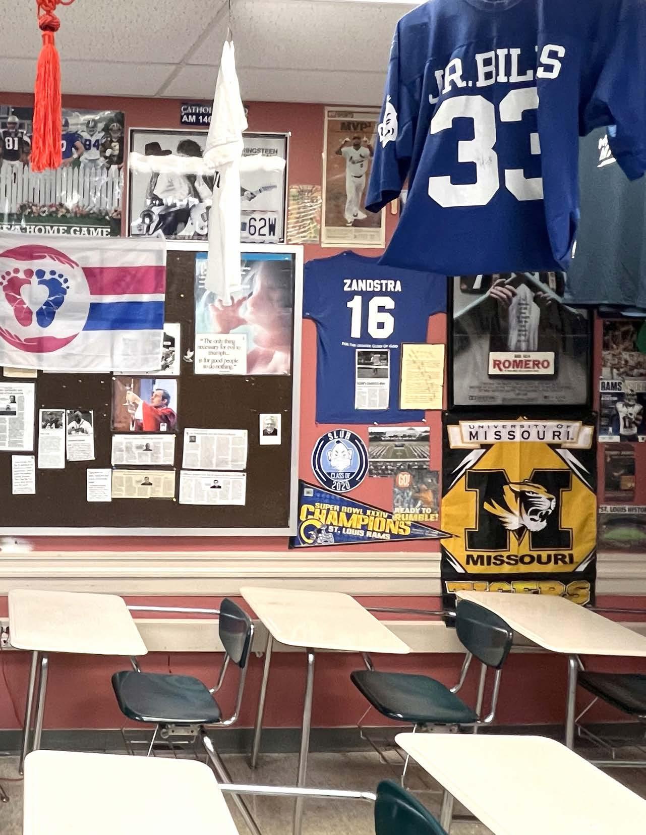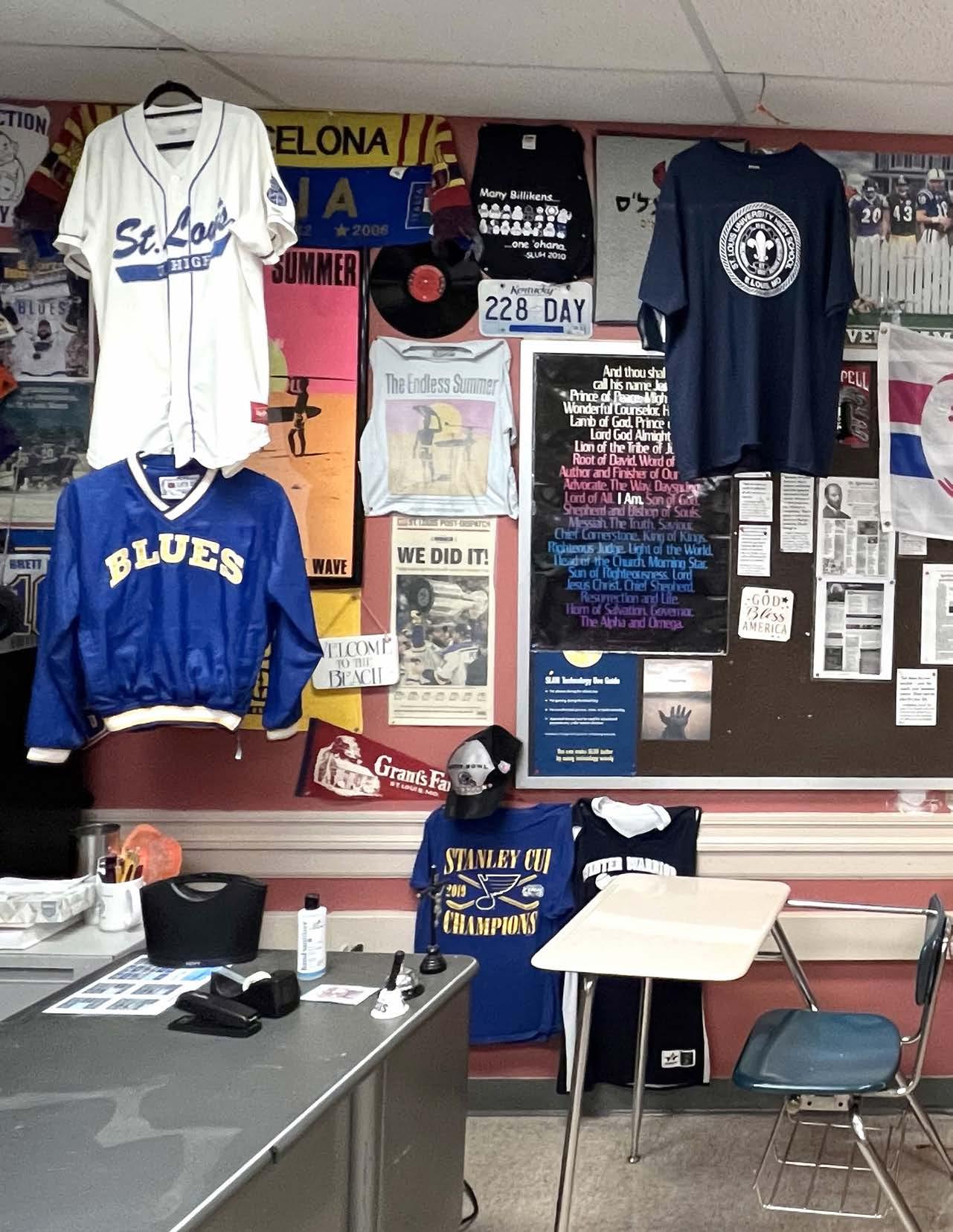 You may know Fr. Stewart previously taught at Regis University and Saint Louis University, in addition to teaching theology and serving as Director of Campus Ministry at SLUH. But did you also know he enjoys music directing, most recently conducting the SLUH musical Godspell on stage in tails and a top hat? Or that he can do uncanny imitations of Ken Wilson (former Blues play-by-play announcer) and the bell that sounds between classes at SLUH?