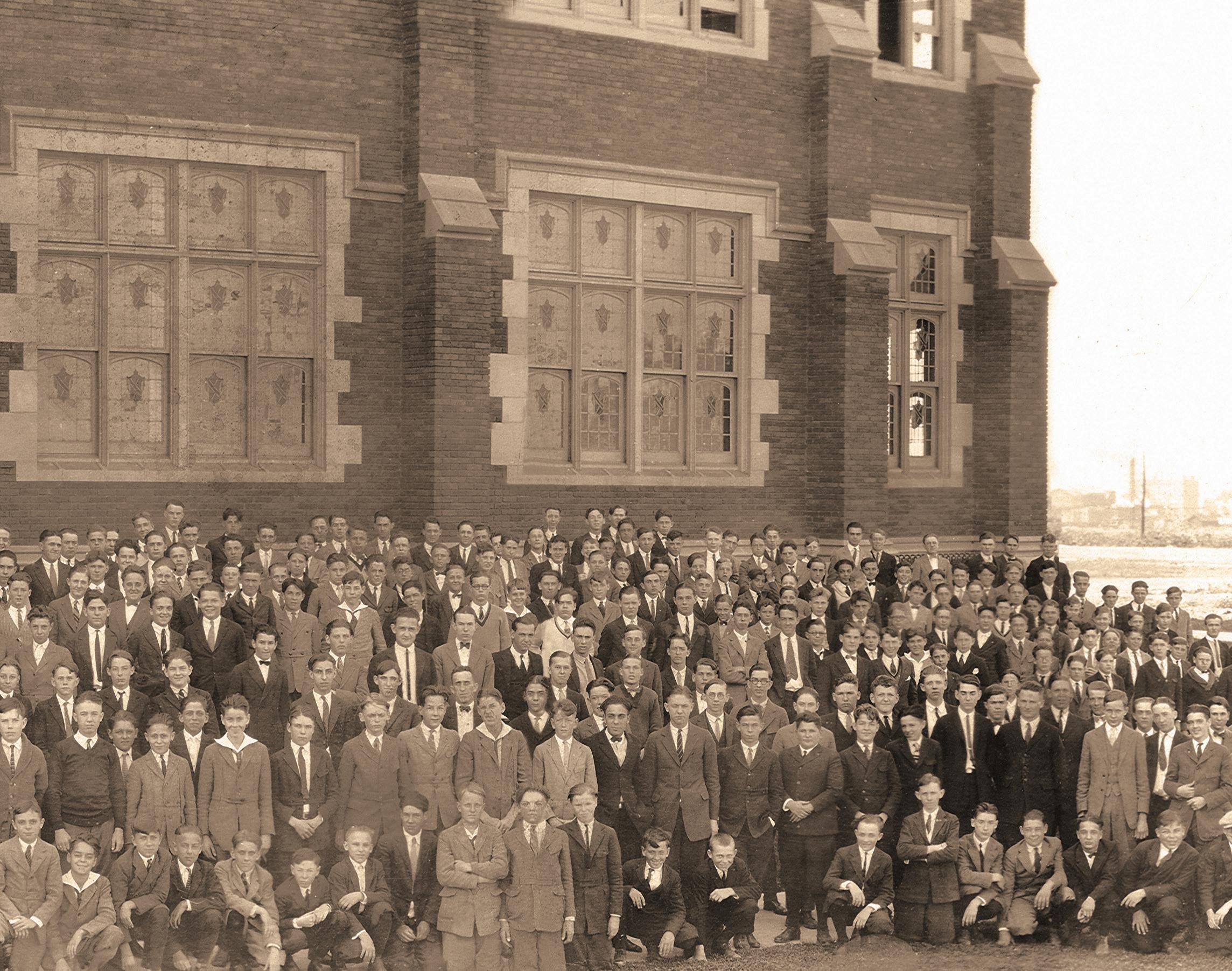 As the school began its second century, one such benefactor would express that gratitude with a gift that gave SLUH an independent life of its own. Anna Backer, whose husband George Backer had attended both the academic (high school) and collegiate divisions of Saint Louis University, funded the construction of a school building on Oakland Avenue. It has cradled this precious institution to the present day. Generations of boys have been formed into men in these halls and classrooms. With gratitude for the Backers’ generosity and for the sacrifices of all who have shepherded the school through its long and challenging history, we begin this bicentennial chronicle.
