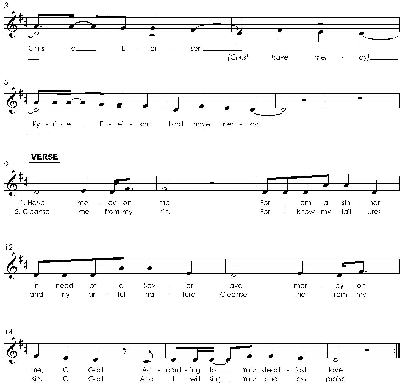 Opening Song: “Kyrie Eleison” (standing, sung by all)