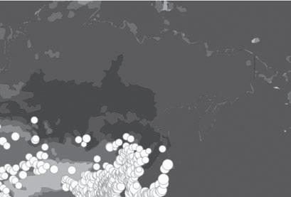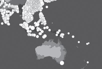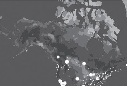 A standard globe shows an uneven mosaic of colors, pixelated more densely in Europe and Africa, easing out to broader chromatic stretches across Asia and North America. is is a familiar vision of the world, the one that we have been taught since grade school, the one that iel was referring to: each patch of land with its own ag, its own anthem, its own national costume and cuisine. e opening parade of the Olympic Games performs this version of the globe every couple of years, reassurance that it’s a small world a er all.