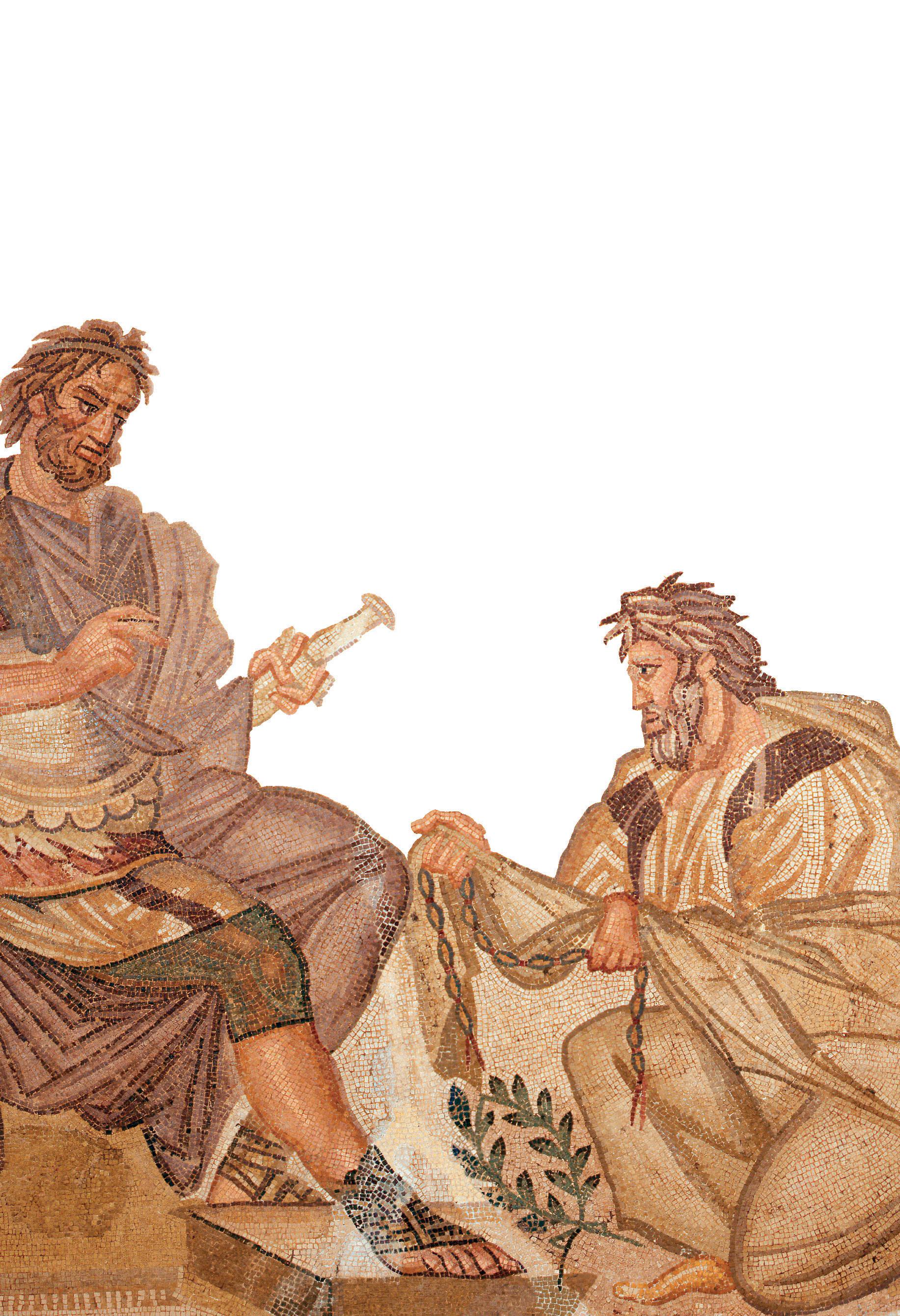 ‘Everyone’ cannot be taken too literally: many women and members of poor families would not have known Homer’s poems, especially if they were slaves, persons to us, but objects for those who bought and sold them. ‘Everyone with leisure or education’ was a more plausible claim. The Iliad rapidly became known across the not-so-small Greek world: it was admired in south Italy long before the 230s bc when the ruler of Sicily, Hieron, owned a preposterously large ship with a sequence of oor mosaics depicting the entire story of the poem. By then, the Iliad also had admirers in the nearby Latin-speaking world. In the 20s bc it shaped the second half of Virgil’s great Latin epic, the Aeneid. Episodes from it continued to be represented in mosaic, sculpture, painting and many minor arts throughout the Roman empire. The most recent example is the big mosaic oor of a villa in Roman Britain, laid out in c. ad 370–400