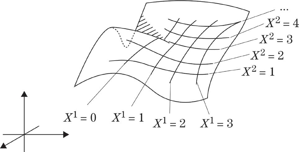 Figure12:Two-dimensionalmanifold(i.e.,2Dsurface)anditscurvilinearcoordinatesviewedembeddedinordinary3Deuclideanspace.
