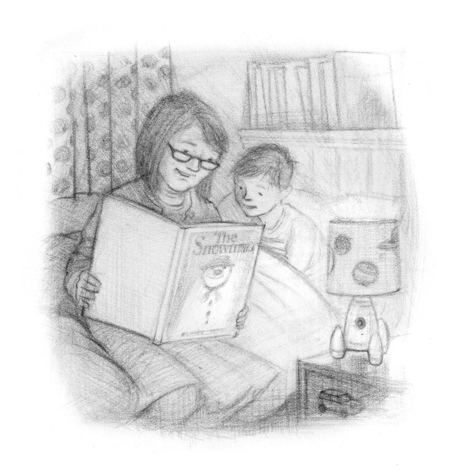 The S nowman on his bed and telling him a story before he went to sleep. And at Christmas time, once the tree was decorated downstairs in the sitting room, once they had put up the holly and mistletoe, and once she had made the mince pies, her favourite story was The Snowman by Raymond Briggs.