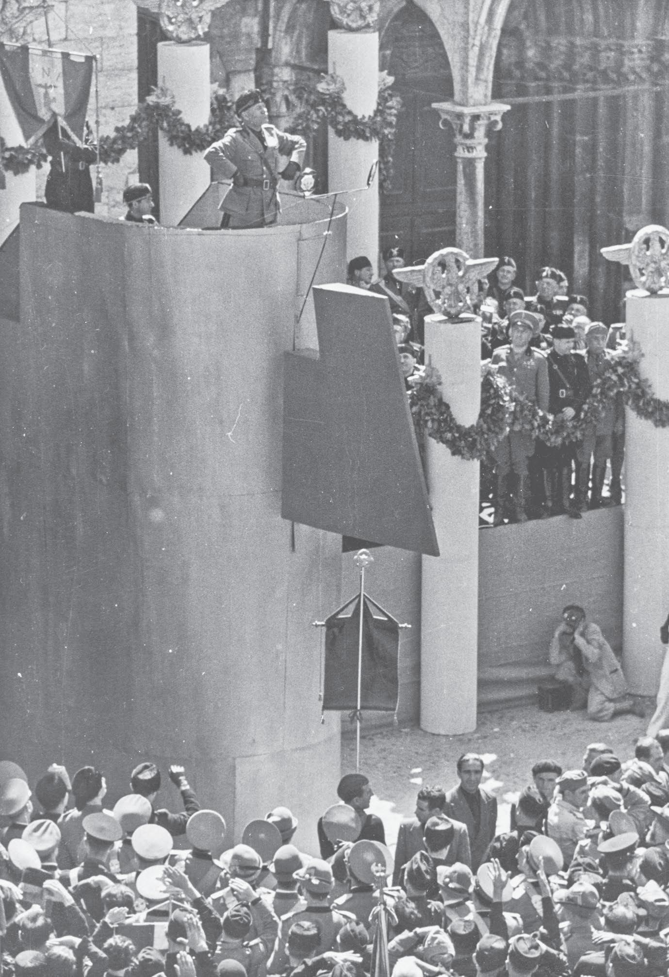p. 23 Mussolini strikes a pose in Trento, 1935 (Trento, Fondazione Museo Storico del Trentino)