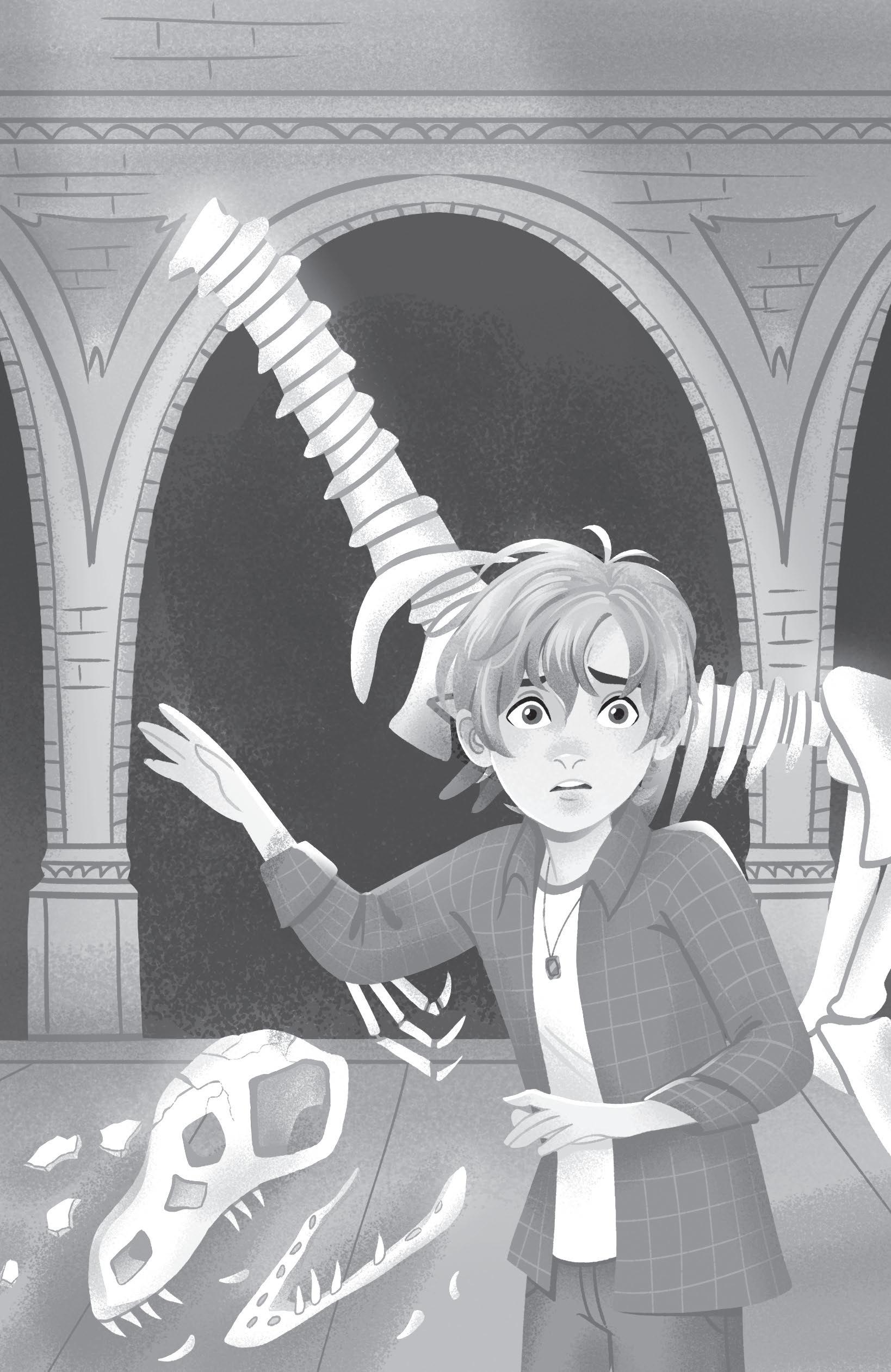 And Hayley – well, at the very last second, Hayley steps to the left, her school bag swinging round and batting the poop right out of the air, sending it whizzing on a new trajectory across the room. My heart leaps into my throat as it soars above the heads of my classmates, straight towards the skull of a velociraptor skeleton elevated on a podium nearby.