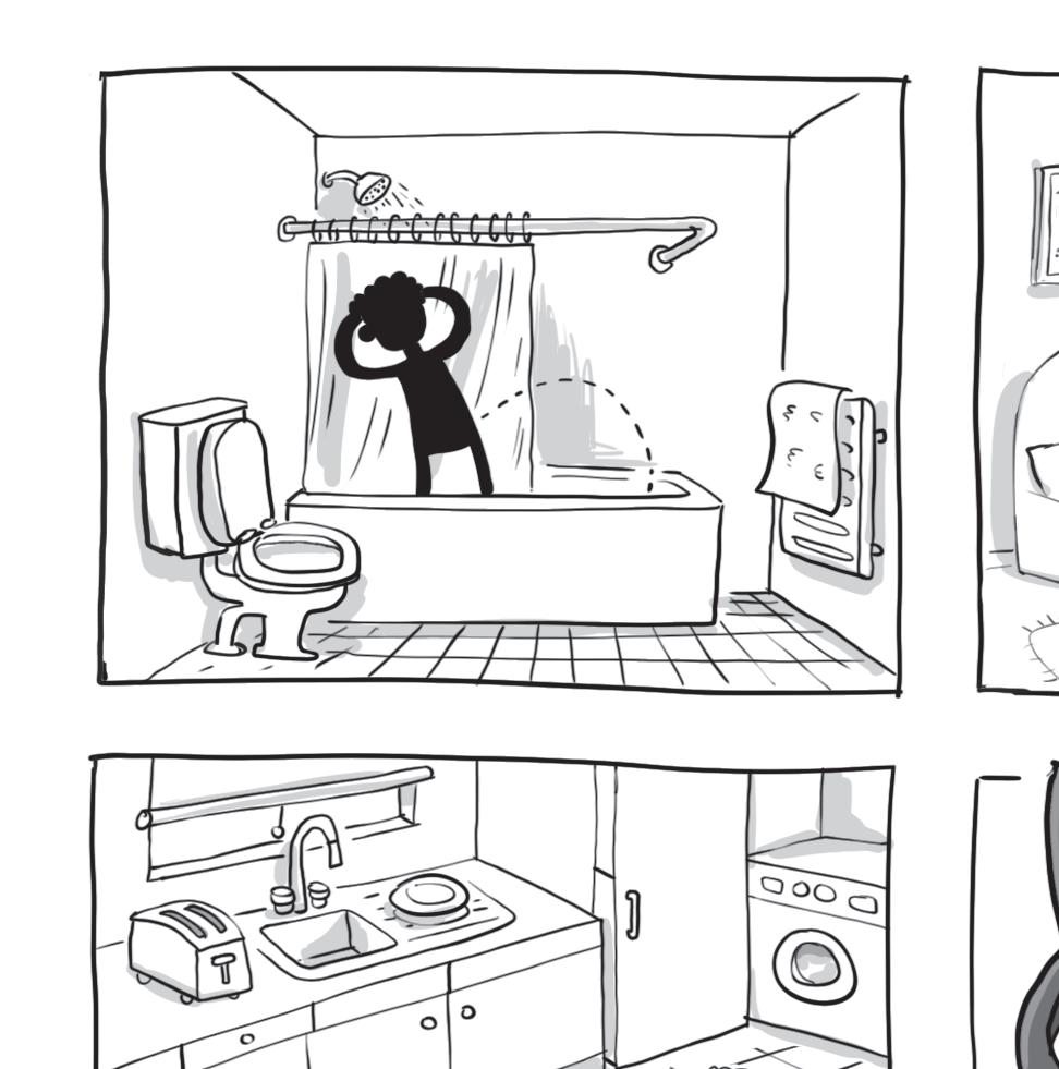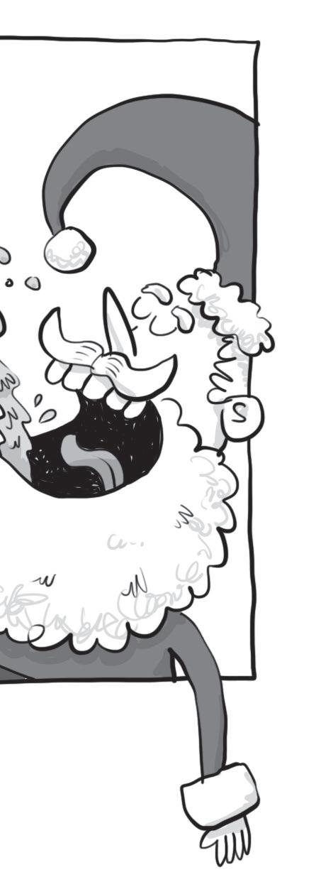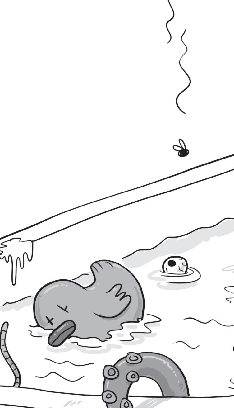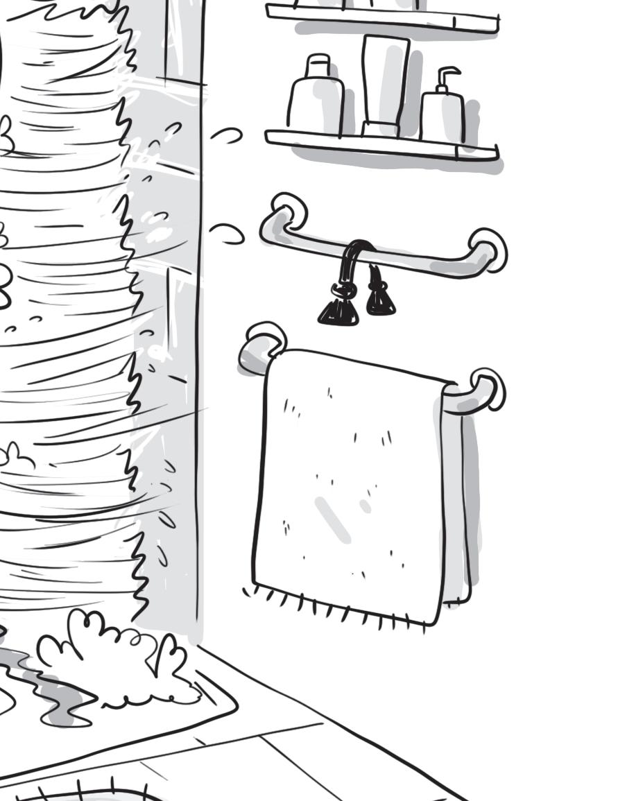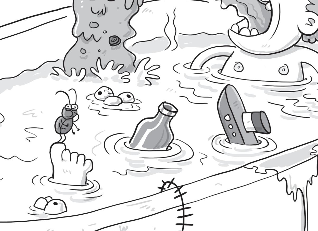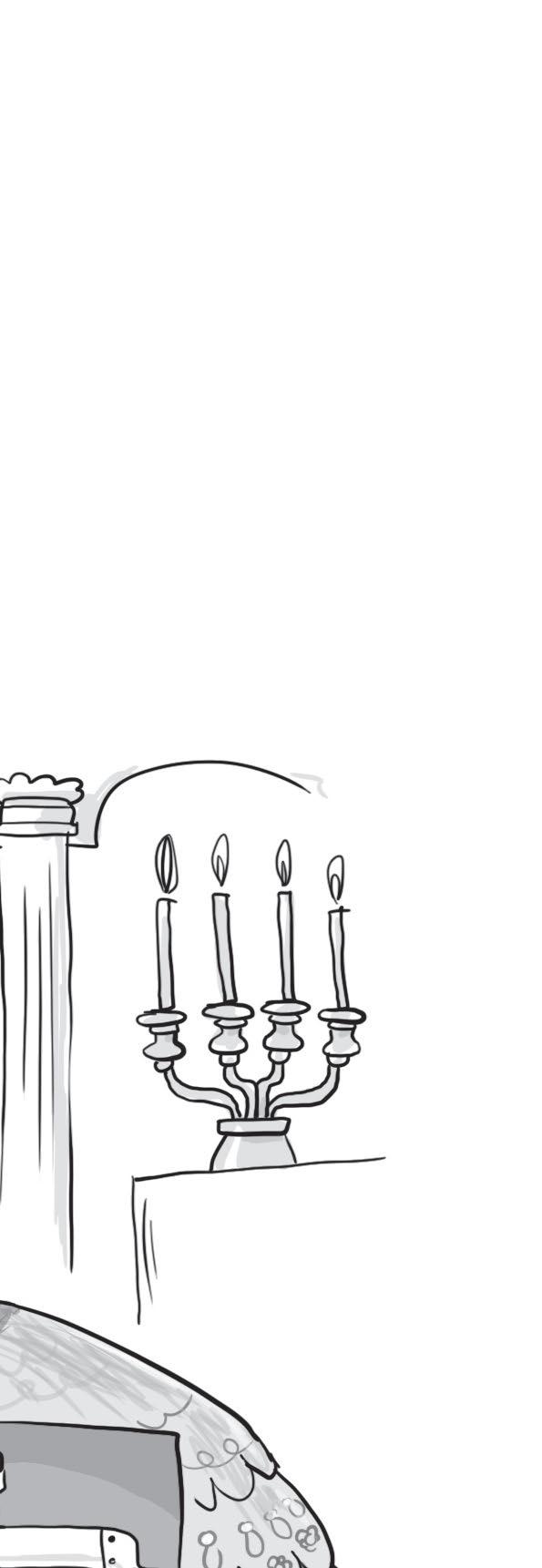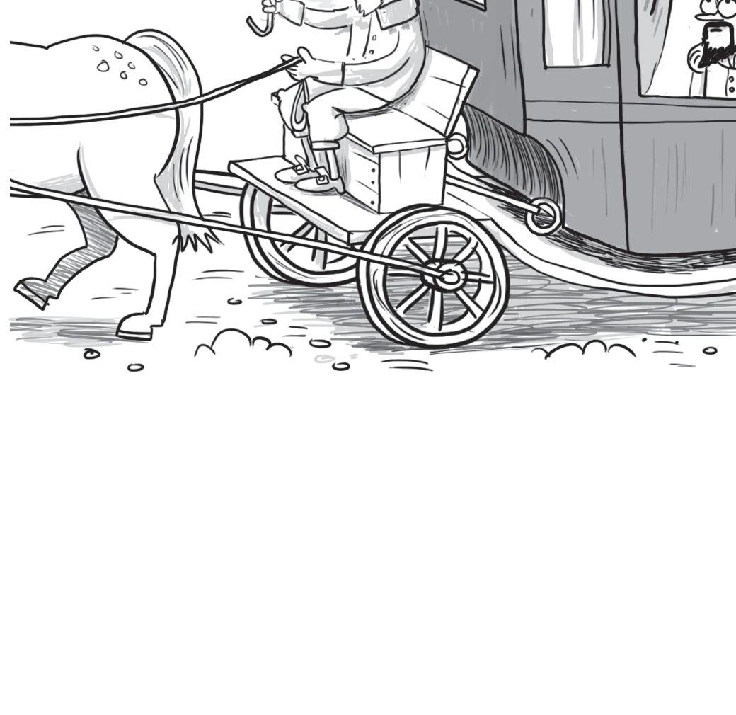 Until one hundred and fi fty years ago, houses didn’t have bathrooms. You basically had three options. Option one: go to a public bathhouse, which was like a big naked swimming pool with soap and sponges. Option two: keep a metal bath in your garden, and once a week carry it inside, put it next to the fi re and fi ll it up with loads of buckets of water that you’ve heated up. Because this was a massive faff, everyone would take turns using the bath one after the other, from the oldest member of the family to the youngest. So you’d better hope that Grandpa doesn’t like weeing in the bath. By the time the youngest person got into their disgusting weekly bath, the water would be so brown and murky that they couldn’t even see their own toes. Option number three was to just stay stinky. This is Pippin’s preferred method. Fact check – and yours.