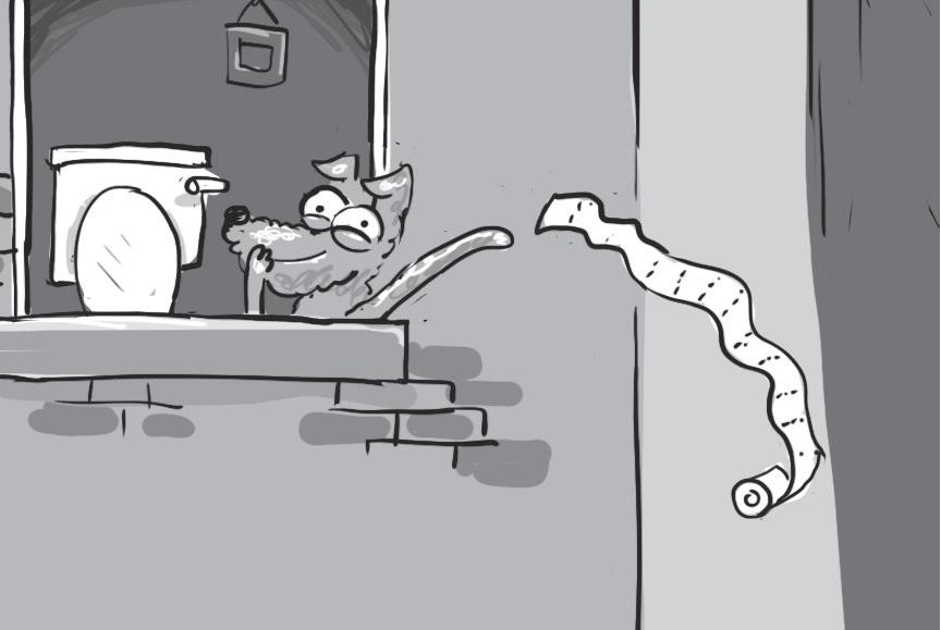 In China, they sussed out the whole toilet paper idea about seven hundred years ago, but it took a lot longer for it to reach Europe or America. Back then, the Chinese would use sheets of paper in a box, a bit like printer paper. I just hope nobody got a paper cut . . . The fi rst actual roll arrived in 1857 in America, and I’m pretty sure people started arguing about whether you should fold it or scrunch it up to use it about two days later. I’m #TeamScrunch. In 1952, companies started making coloured toilet paper, so it could match your bathroom or your socks or whatever. The brown colour didn’t sell very well, for some reason.
