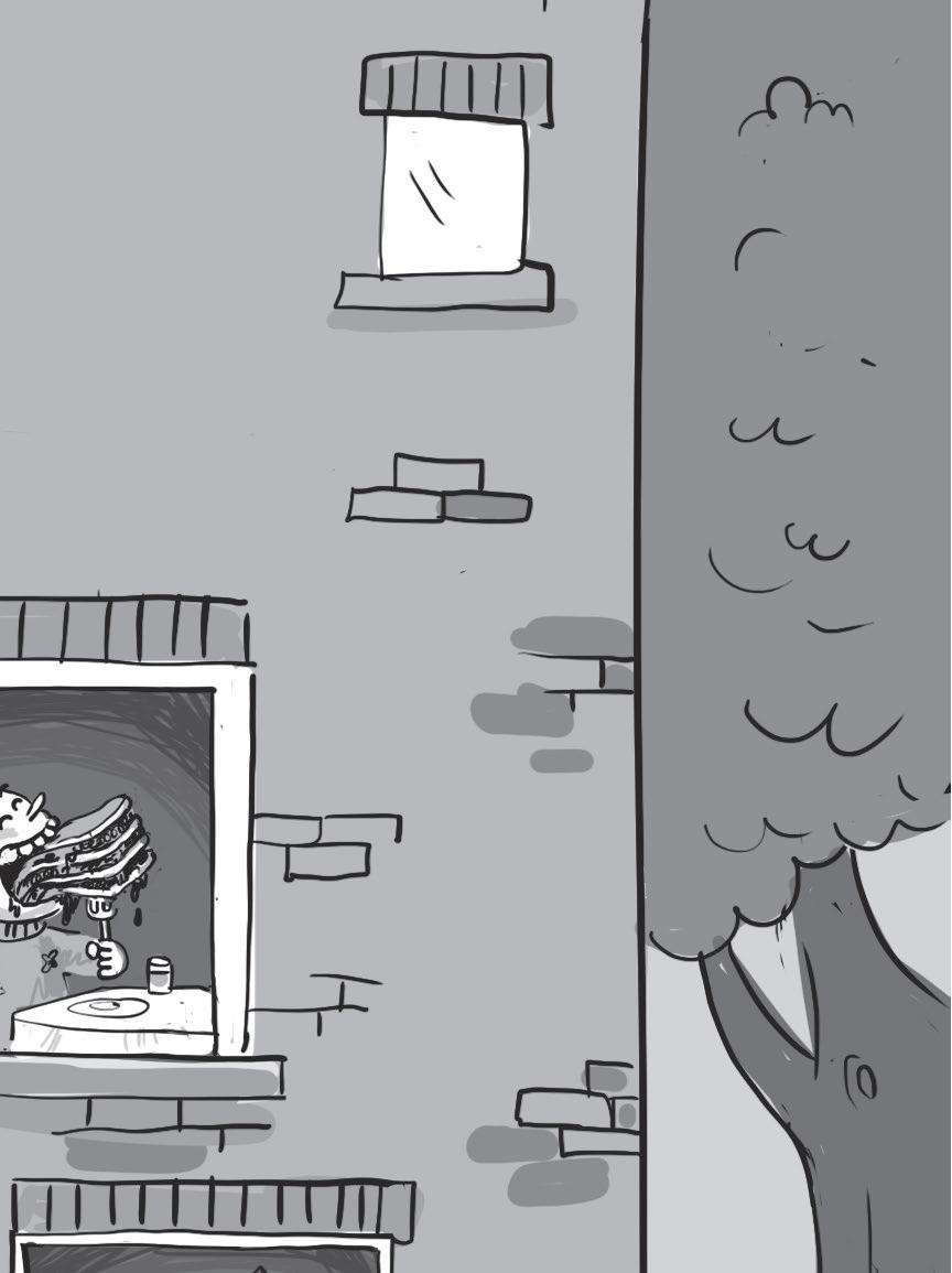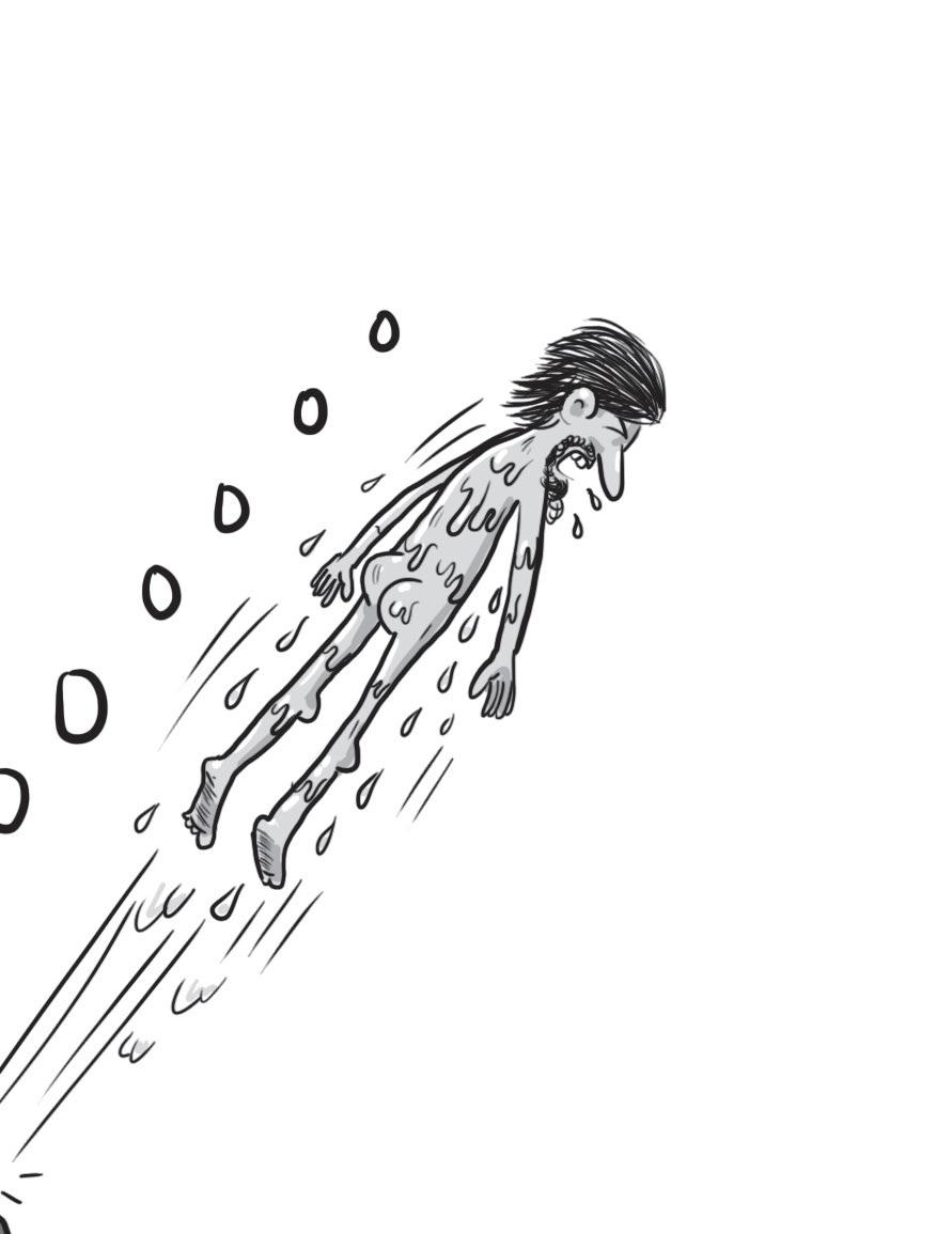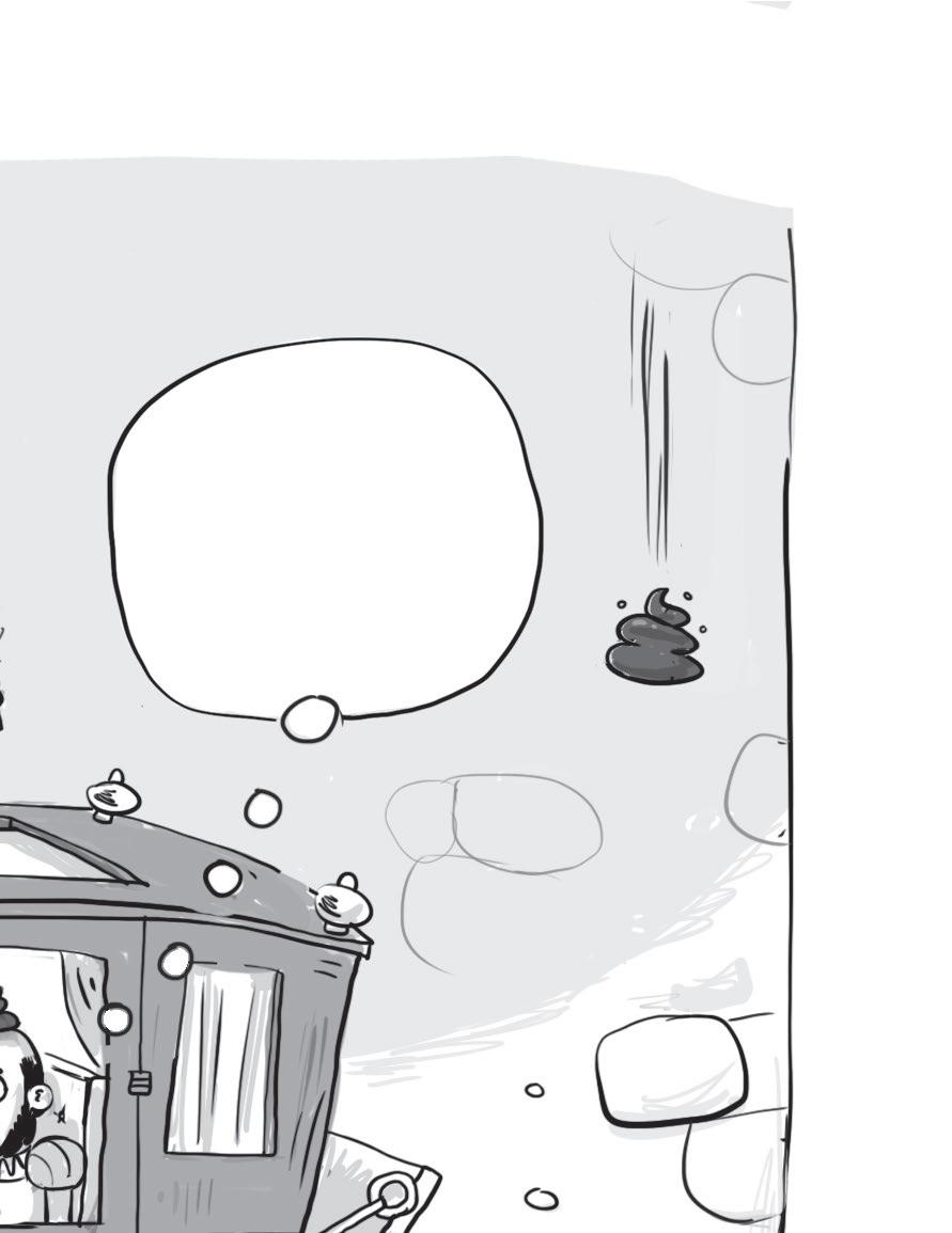 Until about six hundred years ago, people pooed out of the window quite a lot – either straight out, or into a pooey pot fi rst. If you lived in a castle, then it would splat into the moat, which the fishes can’t have liked very much. But if you lived in a tall building, it would just land on the street. Luckily for the people walking underneath, umbrellas had already been invented. (My lawyer, Nigel, has asked me to mention that it is both illegal and disgusting to poo out of your window.)