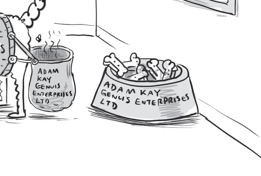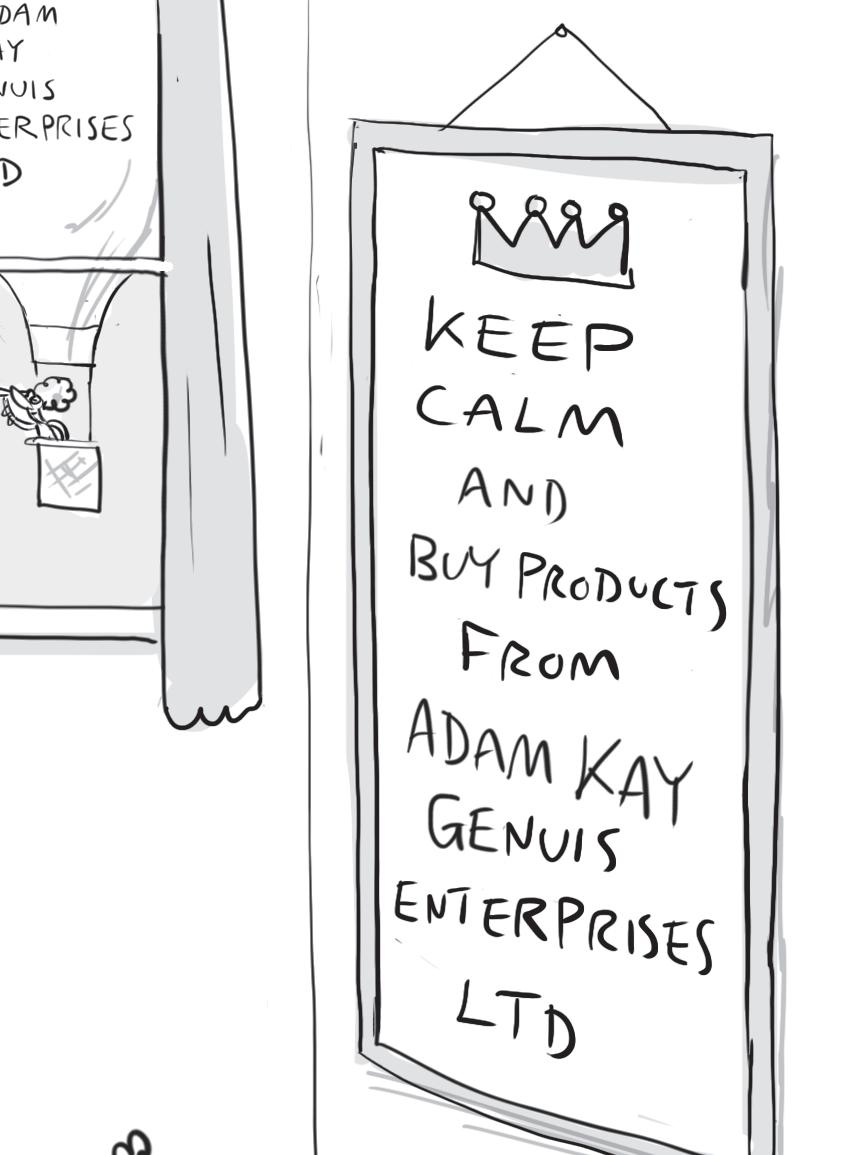 butler, the BUTLERTRON-6000, I am the mega-brain behind Coriander Custard and the Ultimate Underwater Piano, plus over eight thousand other equally brilliant inventions, which you can order directly from my company Adam Kay Genuis Enterprises Limited.