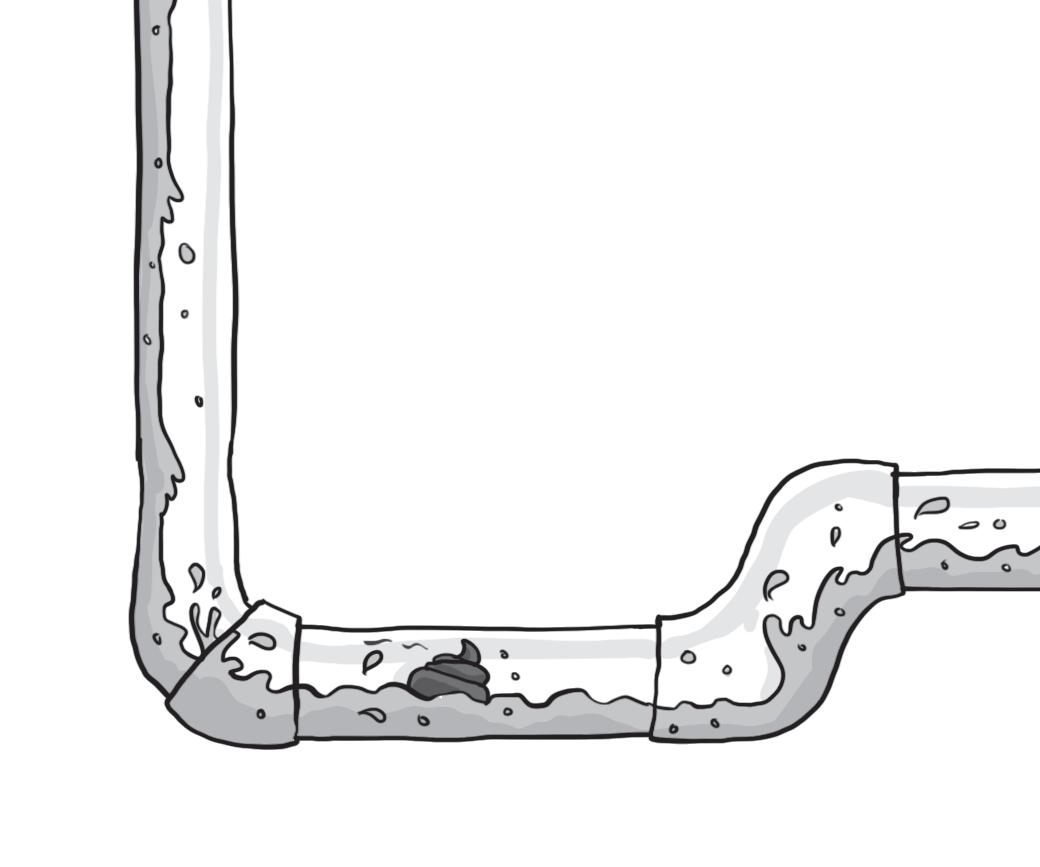 Before long, the toilet situation became quite urgent, because people were getting ill from all the brown stuff that was plopping straight into the rivers and then their drinking water. First on the to-do list was getting some sewers – great big underground pipes to safely whizz away everything that came out of people’s toilets. And then, gradually, lots of improvements to toilet technology started dribbling through like drops of diarrhoea. One of the biggest improvements was thanks to a man who had absolutely nothing remotely funny about his name, Thomas Crapper.