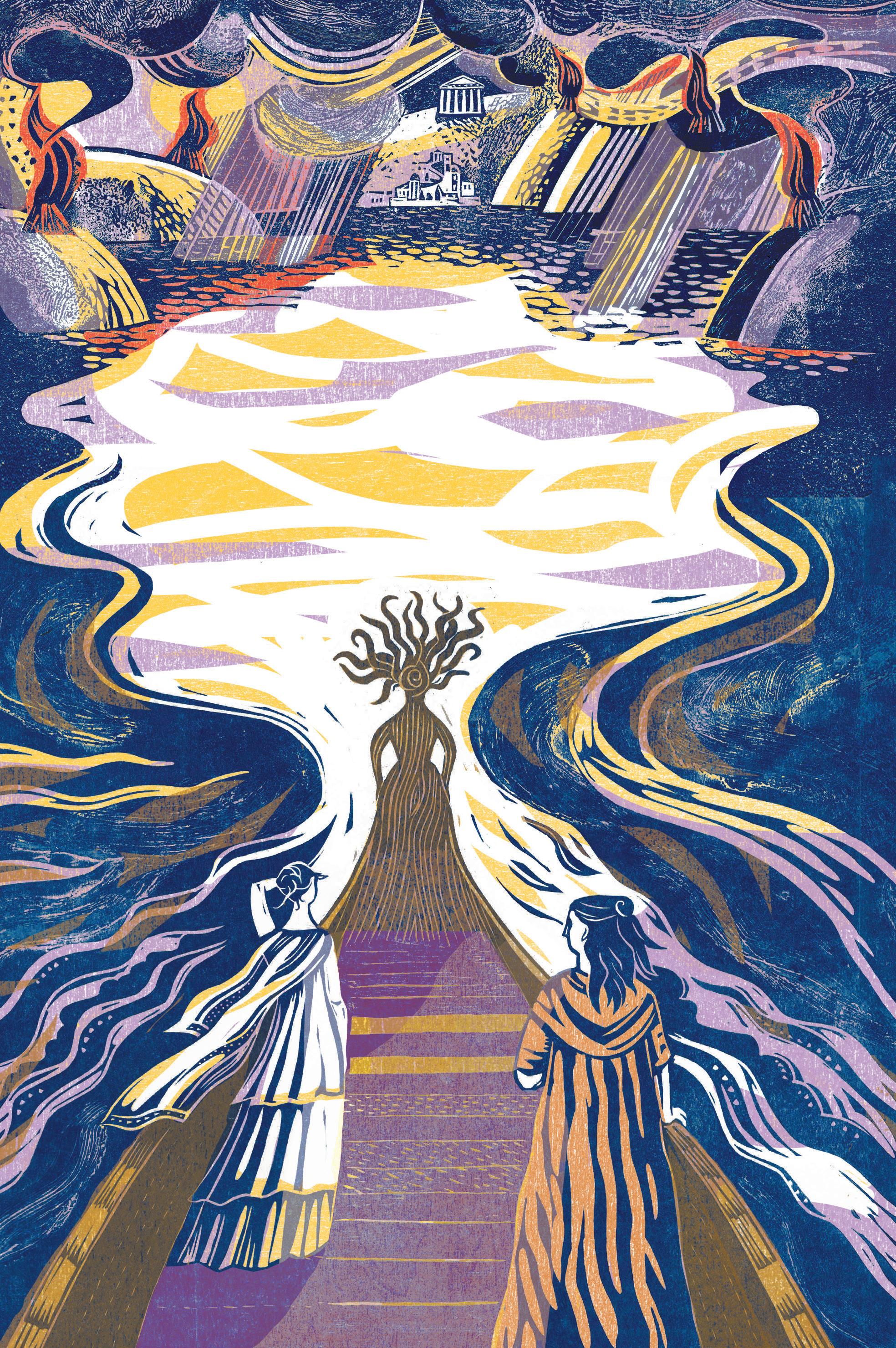 came out. His face was in shadow, but when he turned I caught a glint of gold at his throat and in his hair. Agamemnon. Instinctively, I flattened myself against the wall. For a moment, he seemed to be looking straight at me, but then I realized he was peering beyond me into the darkness. I turned to follow the direction of his gaze, but I couldn’t see anything, just more doors, more darkness. A man’s voice called from the lighted room behind him and, after a quick, dismissive glance at me, he went inside and shut the door.