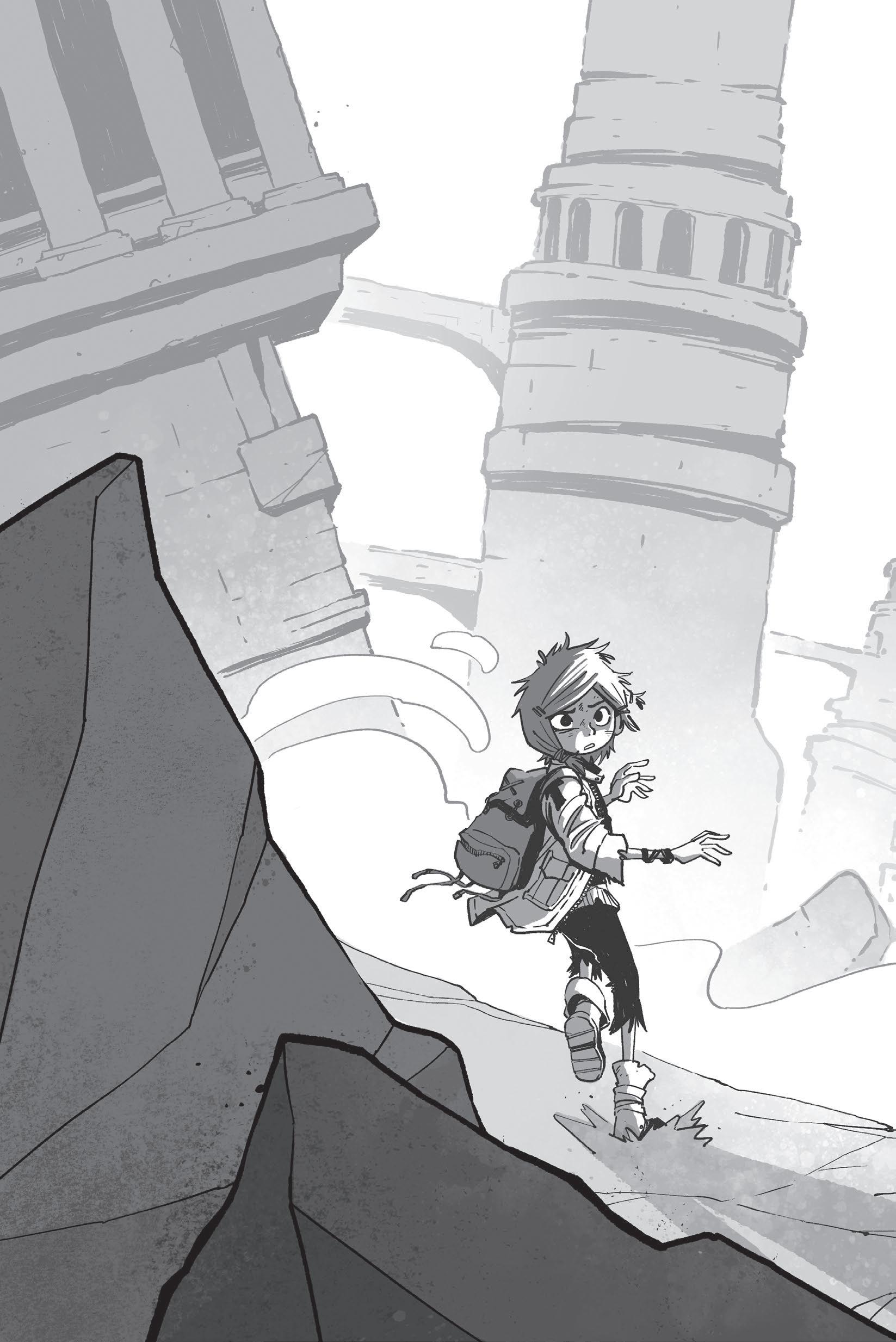The dry earth cracked beneath the girl’s boots. She darted between dust-covered boulders and crumbling ruins, pausing only long enough to check the coast was clear.
