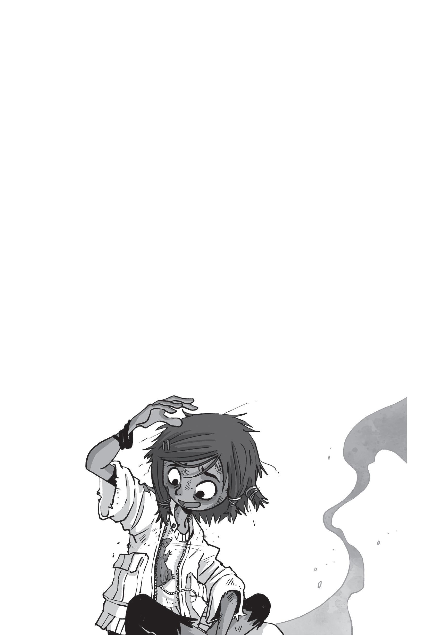 ‘Till I figure out a way back into the city, I guess this is my lot,’ Juniper mumbled. ‘Scrounging for scraps like a rat.’ She turned to McGrubbins who sat on her shoulder. ‘No offence.’