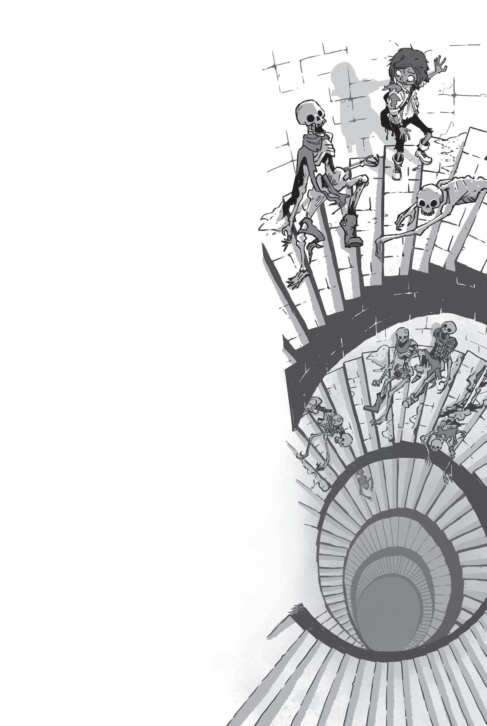 The skeletons she discovered during the climb didn’t fill her with confidence either. They lay slumped on steps and in broken alcoves as she passed, watching her climb with their mocking grins. She knew how they felt; she fancied a good ol’ die right about then. Were they the long-dead remains of the people who’d once lived in this ancient city, or people stupid enough to climb these neverending stairs?