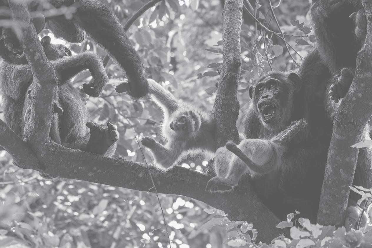 In tropical forest environments with an abundance of plant and animal species, this is not a highly taxing existence and forest chimpanzees spend roughly half of the daylight hours looking for food and eating, with between 60 and 80 percent of their feeding time devoted to searching for and eating fruit. That leaves plenty of time for resting, exploring, socializing, and grooming. But an omnivorous diet high in fruits limits the number of individuals in a group (and hence their maximum density within an exploited area) because there are only so many fruit trees to harvest, most of them produce only one or two crops a year, and other species compete for this limited production. Some forested environments can support an average of 1.5 chimpanzees per square kilometer, or up to two or even four individuals in the best fruit-providing areas, while in open, and often degraded and arid, savannah environments, typical densities are less than one individual per 2 square kilometers.4 Living off wild fruits and the small animals that you and your family have captured and killed is clearly impossible in today’s high-density urban environment.