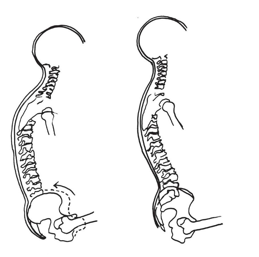 The forward curvature of the human spine is called lordosis. Support for the lordosis should rest in the iliac crest region, which is roughly where you wear your belt. That is the area of the body said to have the maximum need of support when you lean back in a chair, if your back is to retain its natural shape.