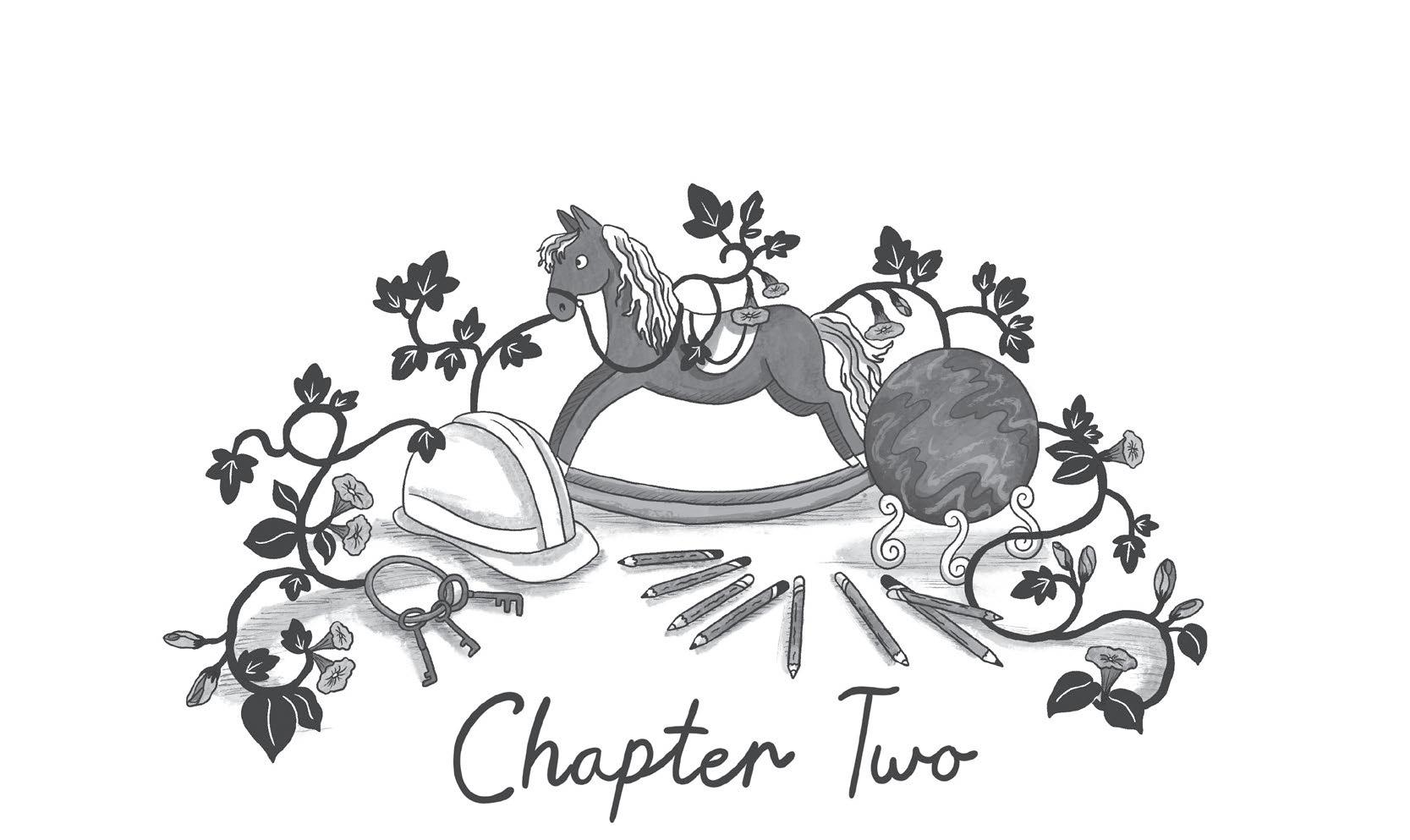 The next room up was another bedroom, but water had dribbled in through a big crack in the ceiling and the bed itself had grown a coverlet of greeny-black mould. There was a tarnished brass ball on three of the bedposts, but the fourth had a white wooden cat carved on top, with its tail curled round the post. There was a dressing table too, but the wood was swollen and rotten. There were books, but their bindings were stained and the pages so rippled with damp they wouldn’t turn.