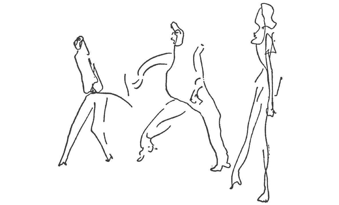 Sitting with acquaintances outdoors at a co eehouse table and looking at a woman at the next table who has just arrived, breathes heavily under large breasts and with a heated shiny brownish face sits down. She leans her head back, a heavy down becomes visible, she turns her eyes upward, almost in the way she might sometimes look at her husband, who is now reading an illustrated paper next to her. If only one could persuade her that next to one’s wife in a co eehouse one is permitted to read at most a newspaper but never a magazine. A moment makes her aware of her corpulence and she moves away from the table a little.