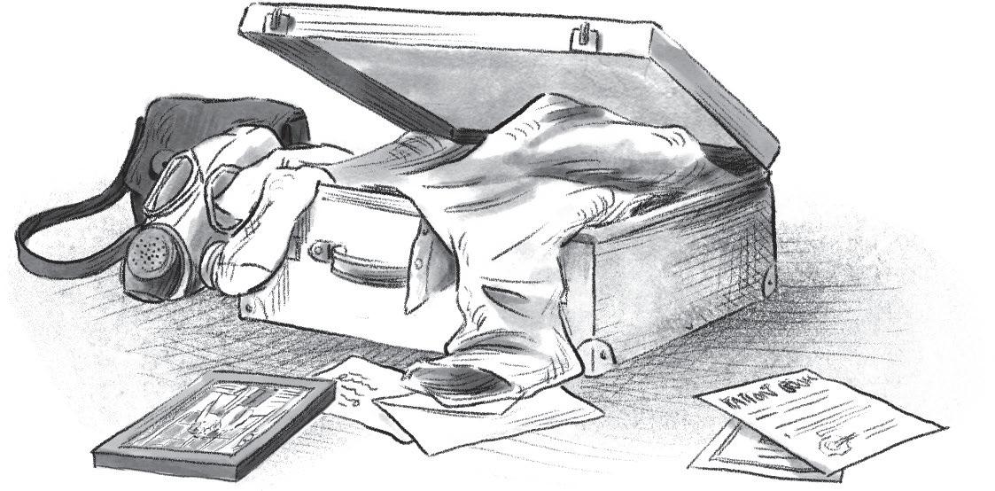 He was still wrestling the suitcase shut when his sister Rosie came through the door. ‘Aren’t you forgetting something?’