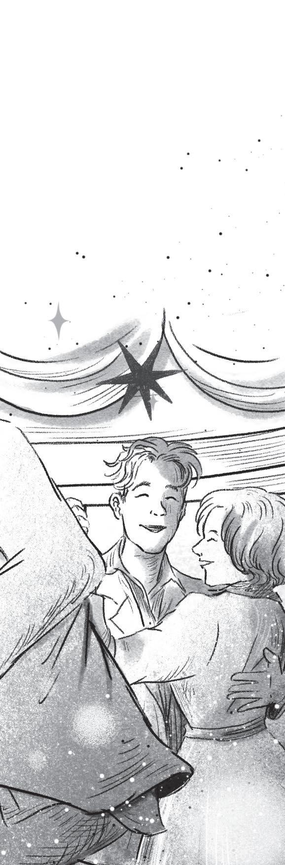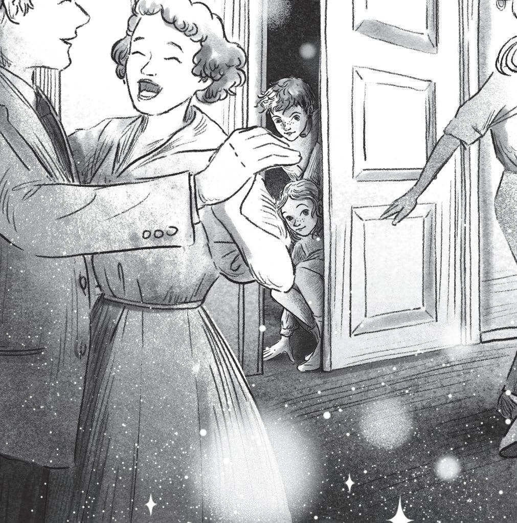 musicians played – and there were Harry and Rosie, together with Mum and Dad. In the corner, the Christmas tree sparkled. Mum’s eyes glittered like the baubles on the tree – and the way Dad stood, so steadfast, made it difficult to believe there was a war on at all.