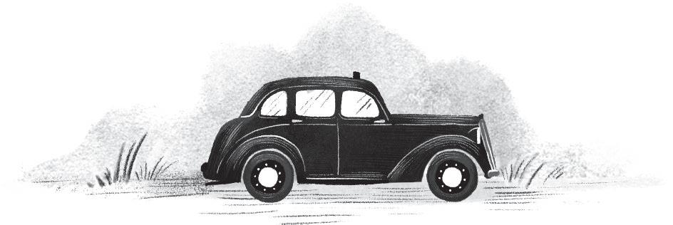 There was a dim outline in the fog, a black Morris Ten, the car Dad used to drive. Its door flew open. A thin, angular figure unfolded from inside.