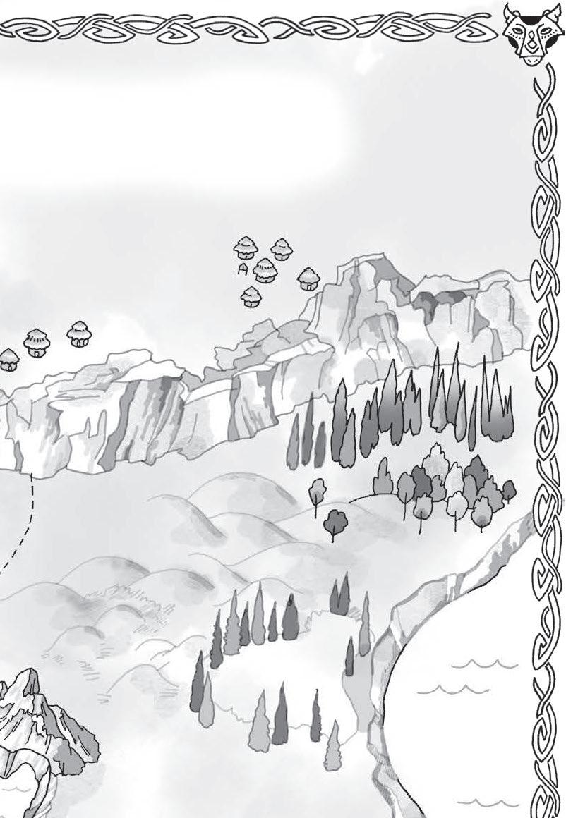 head of the long oak table, her silver braids coiled around a headdress of bone and briars. Kohl lined her eyes and lips, but her wool robes were replaced with blue satin.