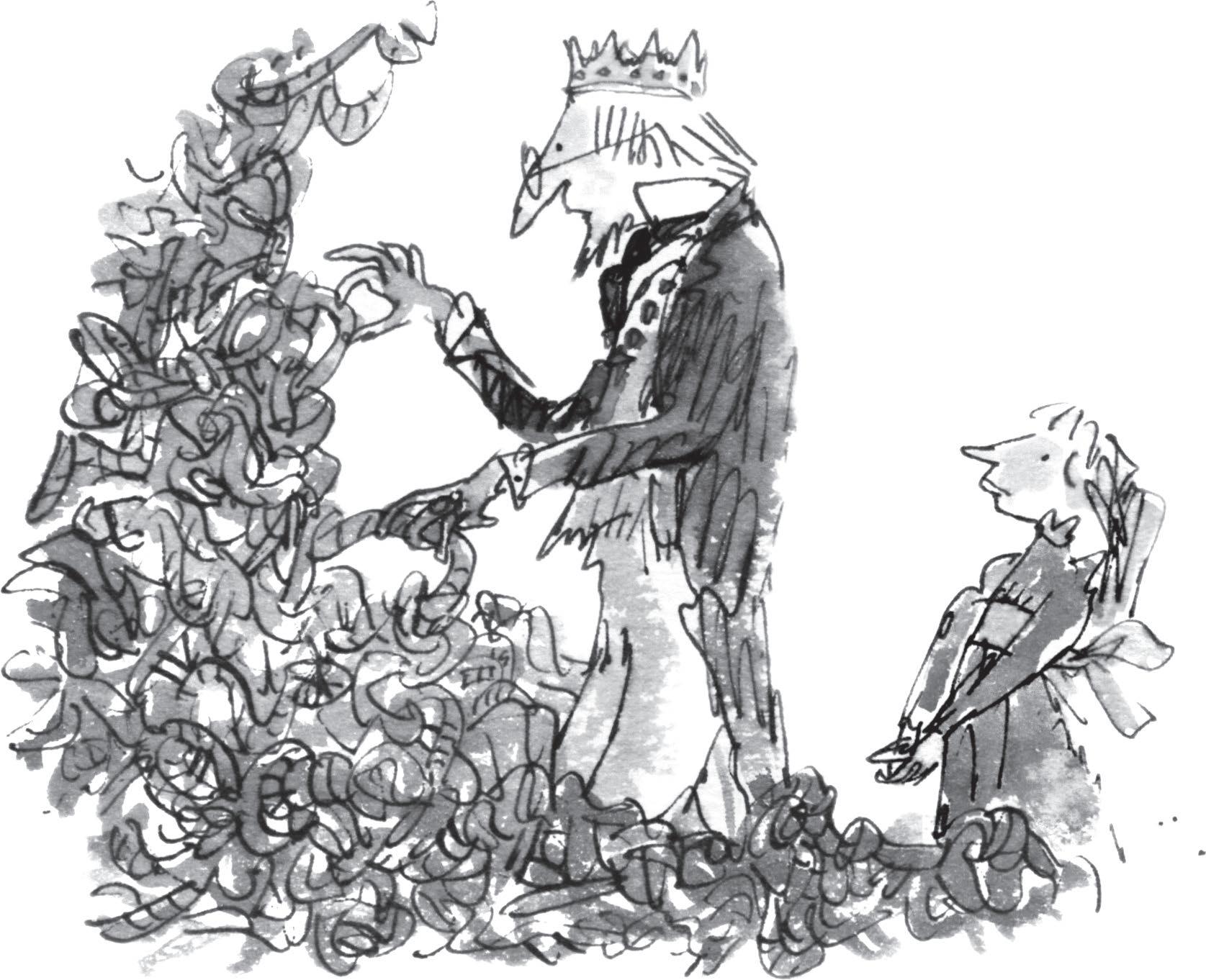 The King had a whole roomful of rope. It was tangled and twisted in great thick knots from end to end. He kept picking and tweaking at the rope. But he hardly ever got one of the knots undone.