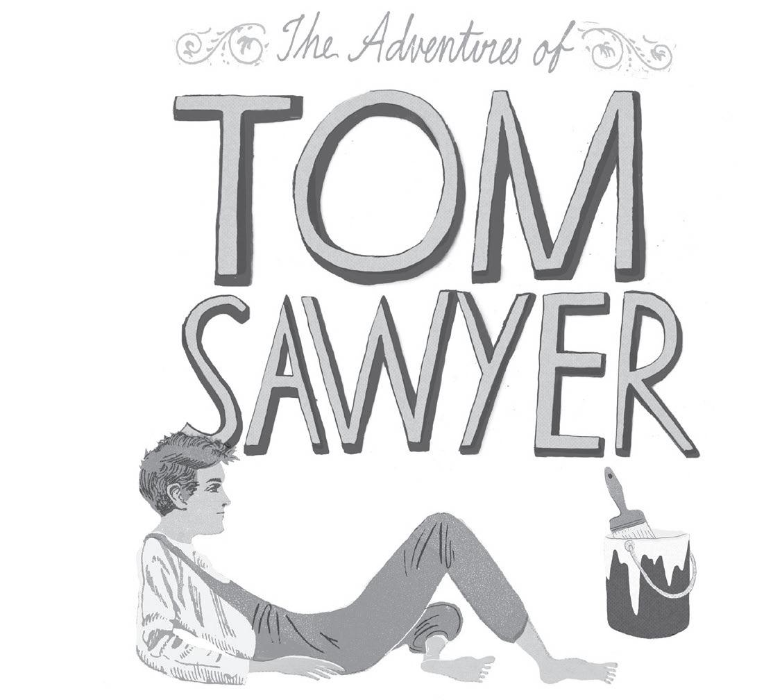 Tom appeared on the side-walk with a bucket of whitewash and a long-handled brush. He surveyed the fence, and the gladness went out of nature, and a deep melancholy settled down upon his spirit. Thirty yards of broad fence nine feet high! It seemed to him that life was hollow, and existence but a burden. Sighing he dipped his brush and passed it along the topmost plank; repeated the operation; did it again; compared the insignifi cant whitewashed streak with the far-reaching continent of unwhitewashed fence, and sat down on a